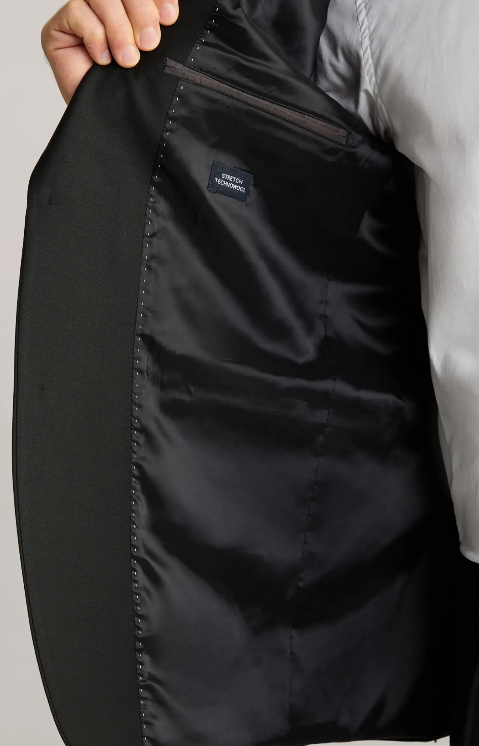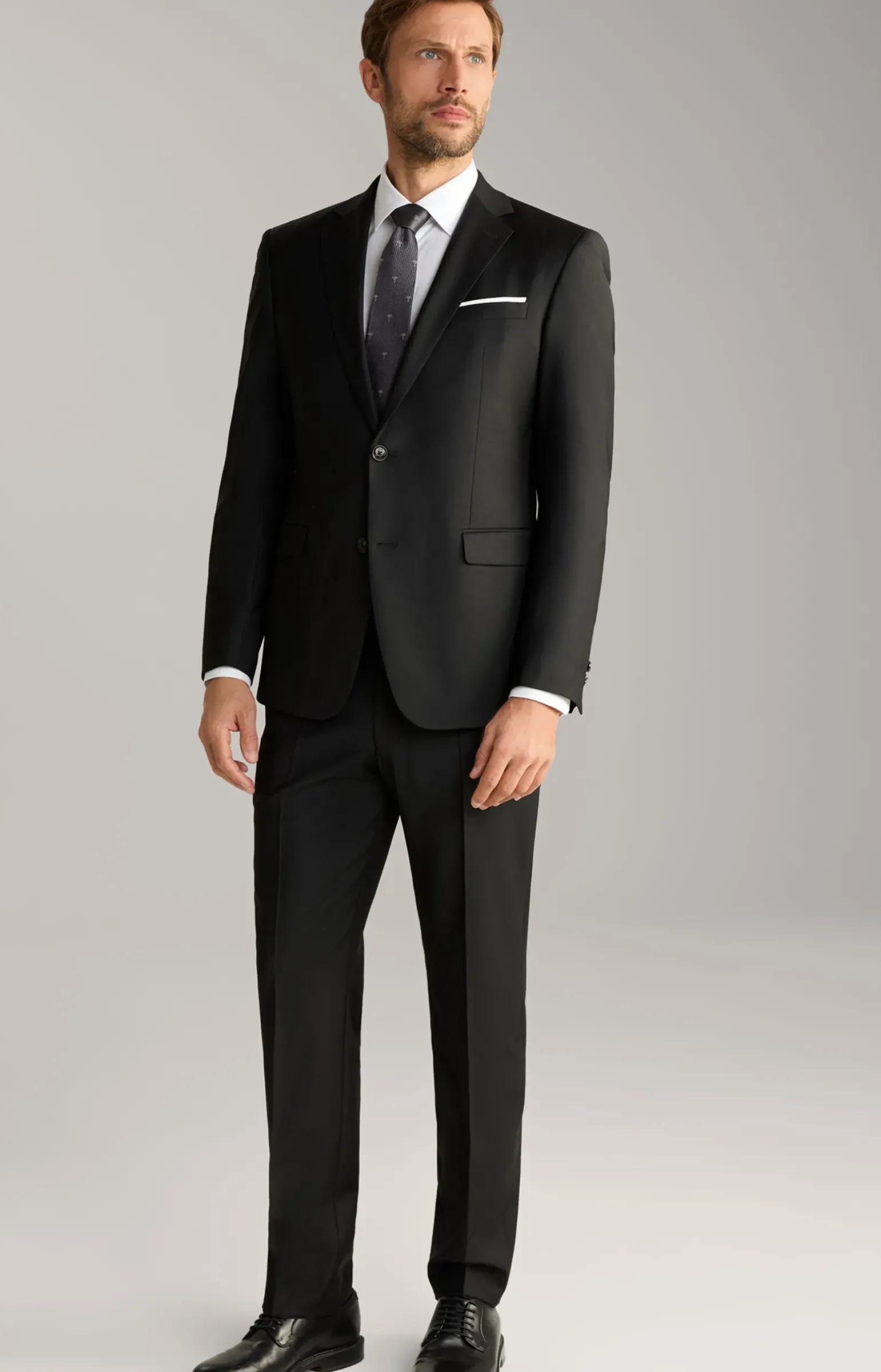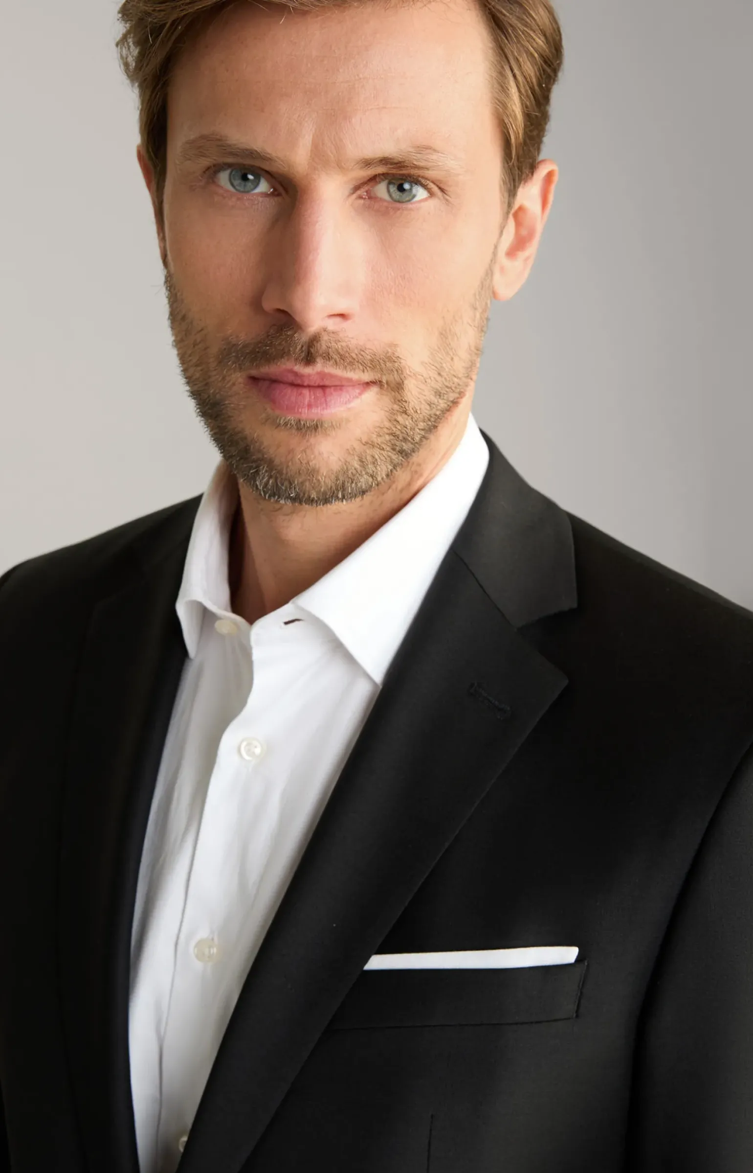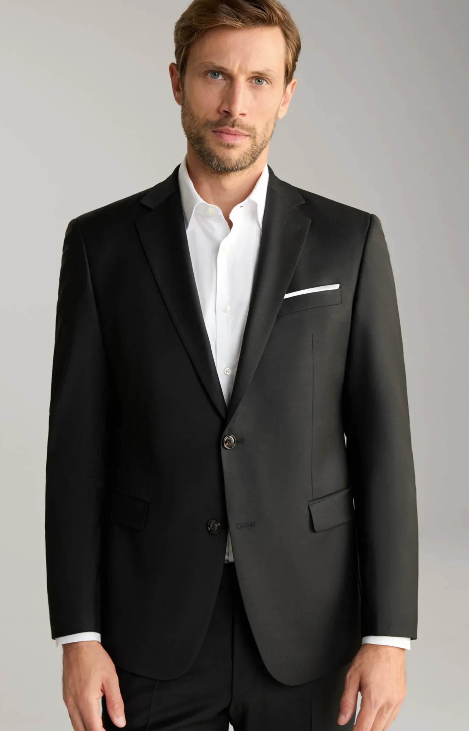 - eine angeschrägte Brustleistentasche mit angedeutetem Einstecktuch