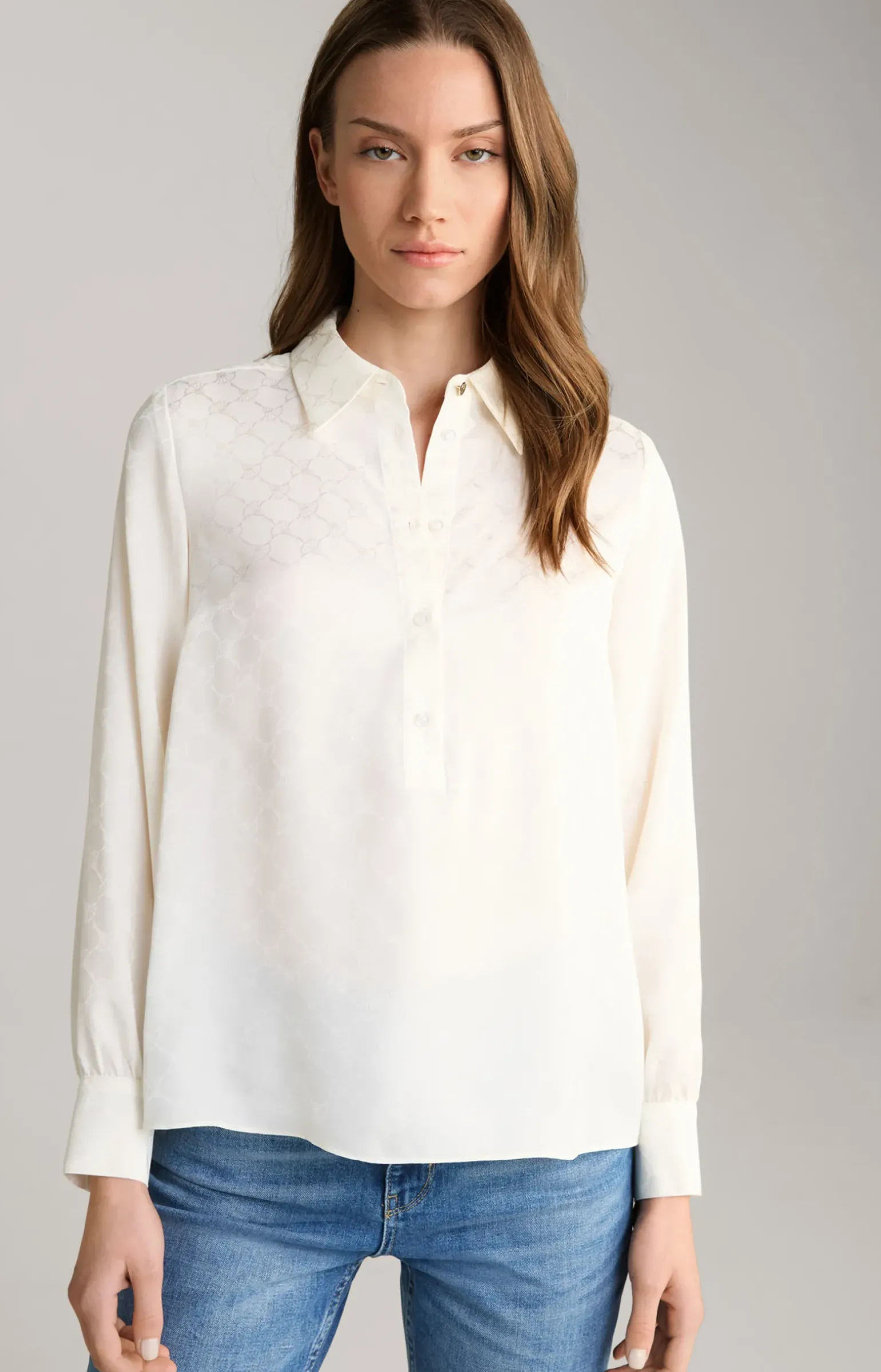 - lange Ärmel mit knöpfbarer Manschette und Zierschlitz