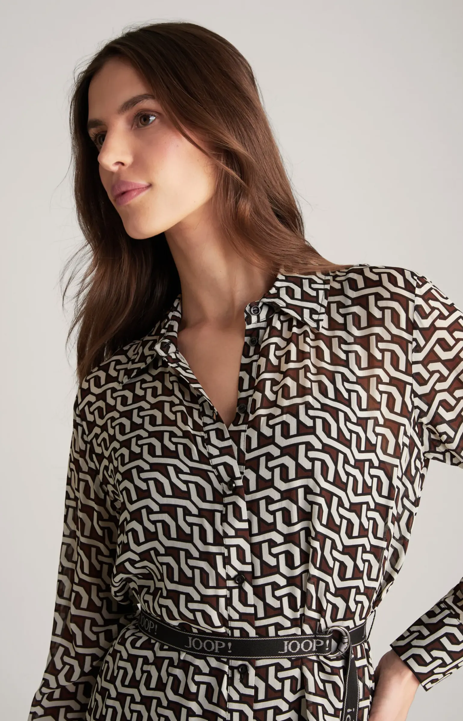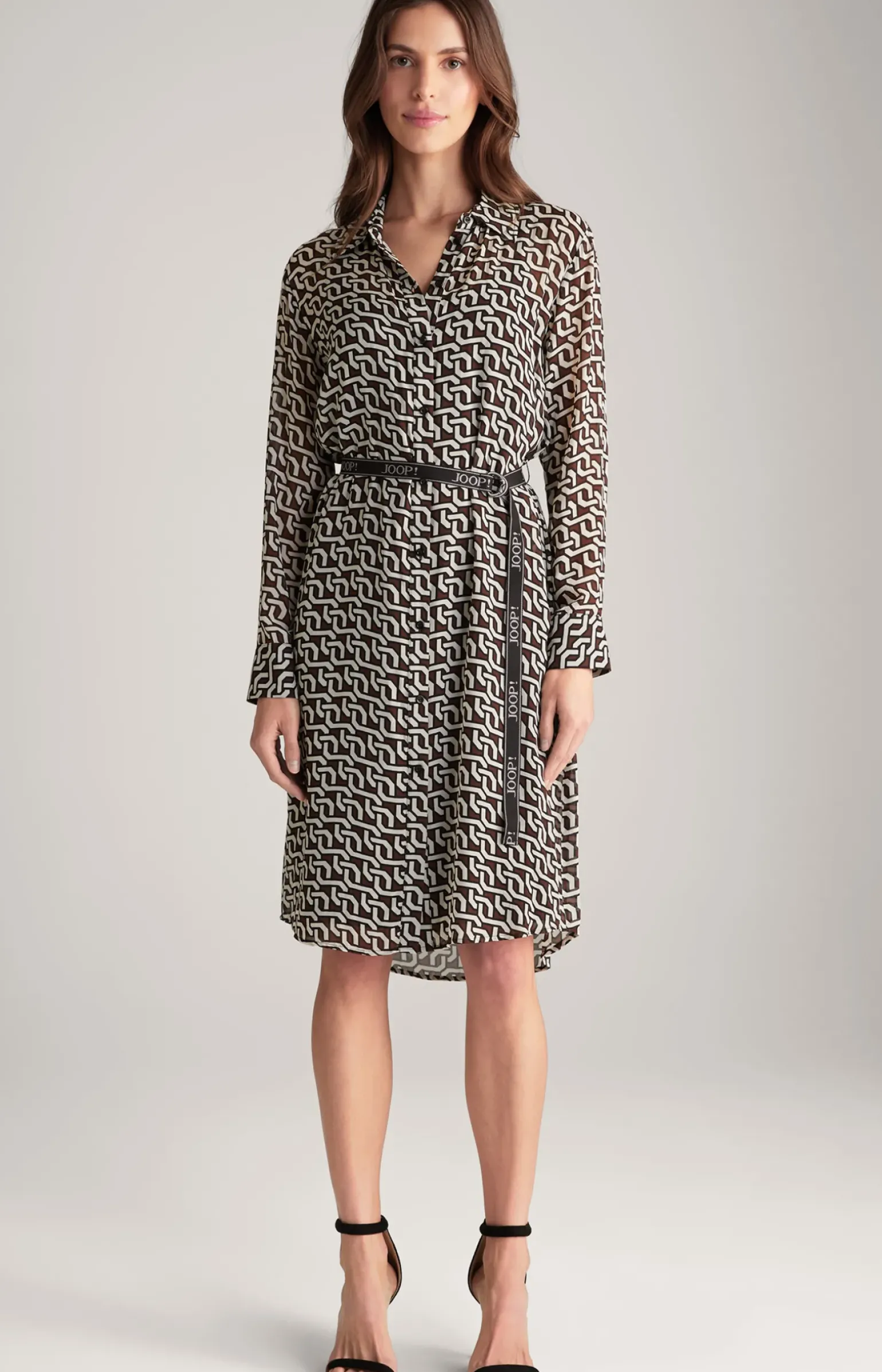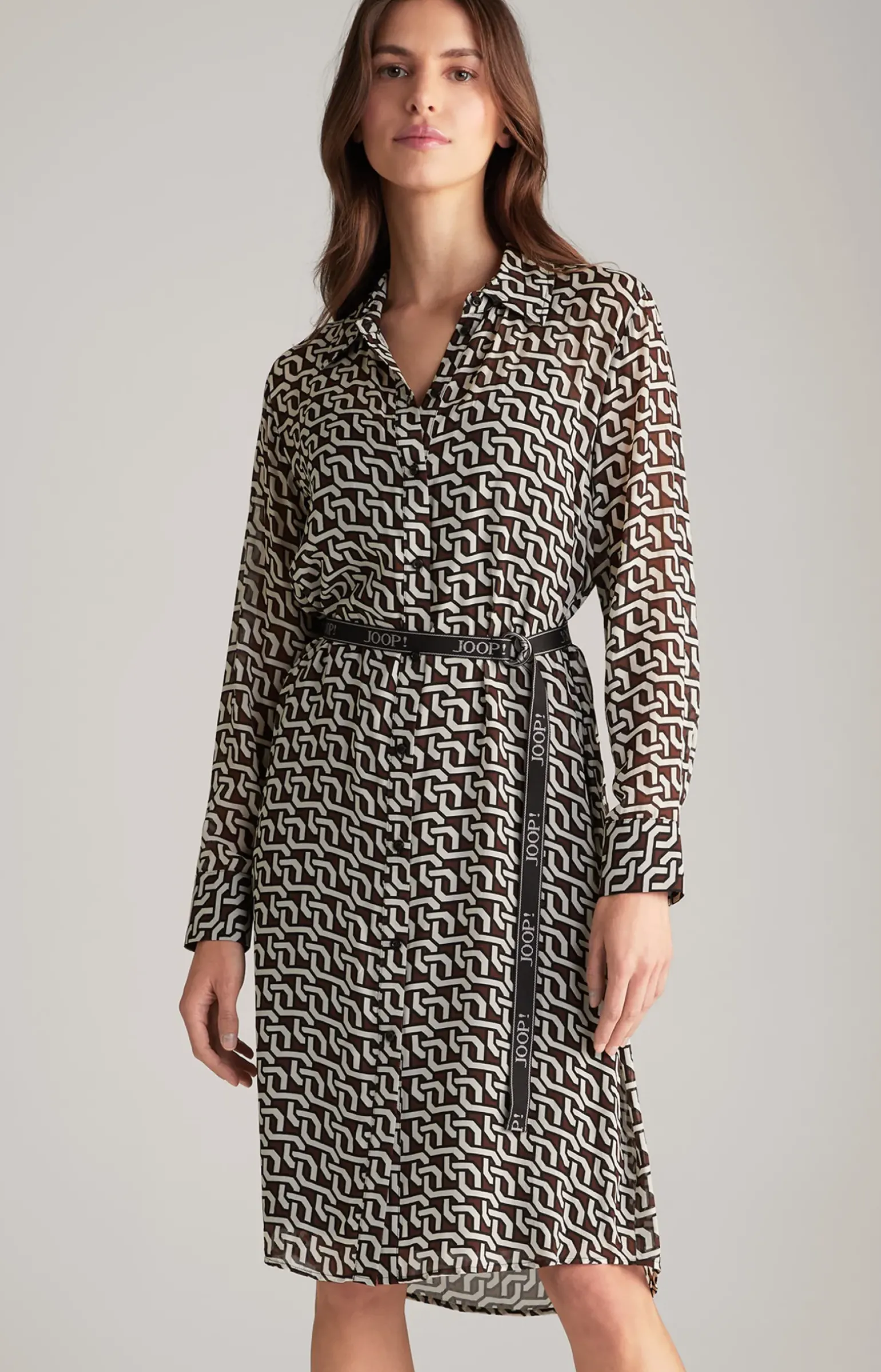 Georgette-Hemdblusenkleid in Braun/Creme/Schwarz gemustert