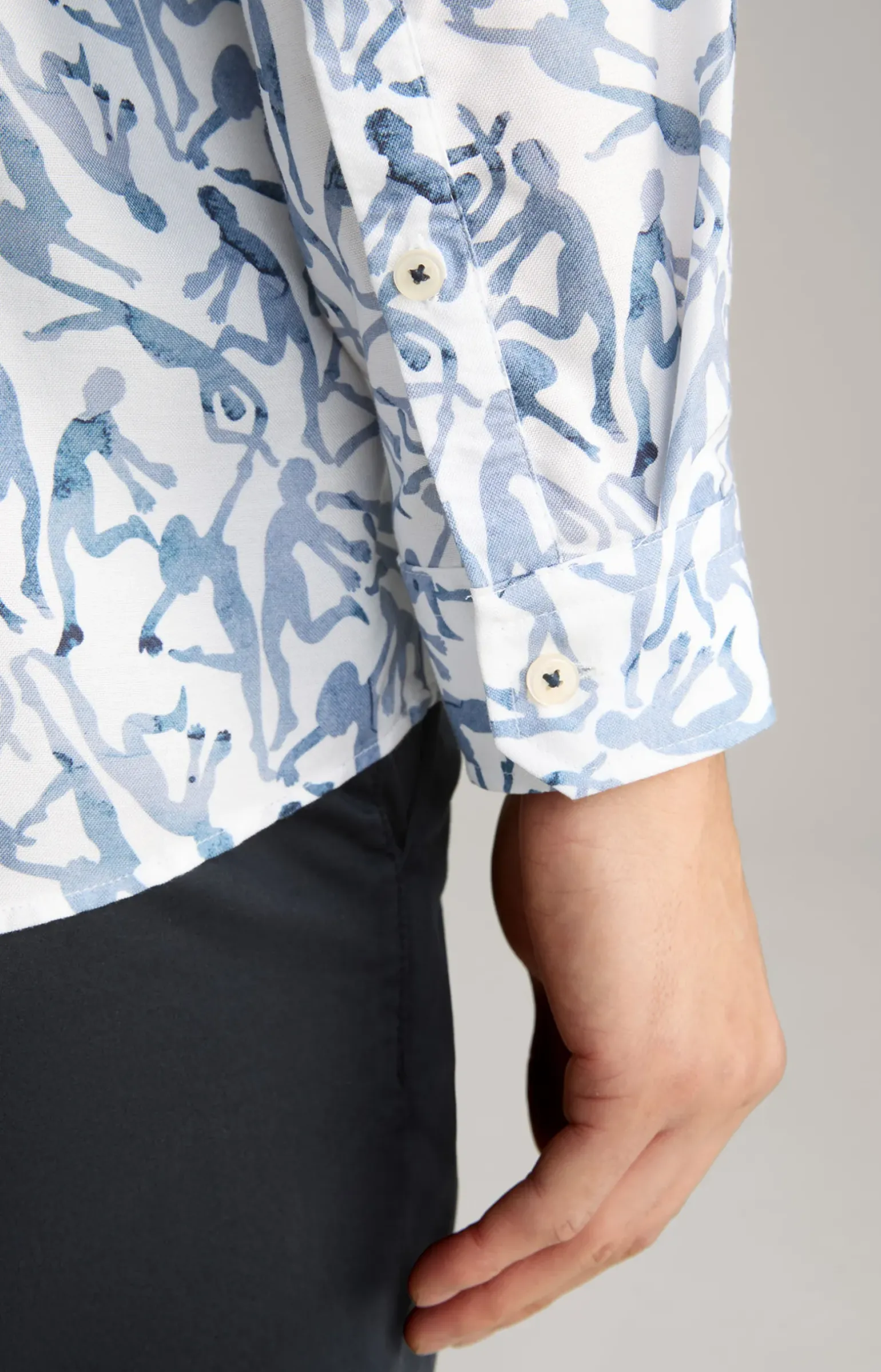 - Ärmel mit knöpfbarer Manschette und Dachschlitz, links mit Logo-Signé