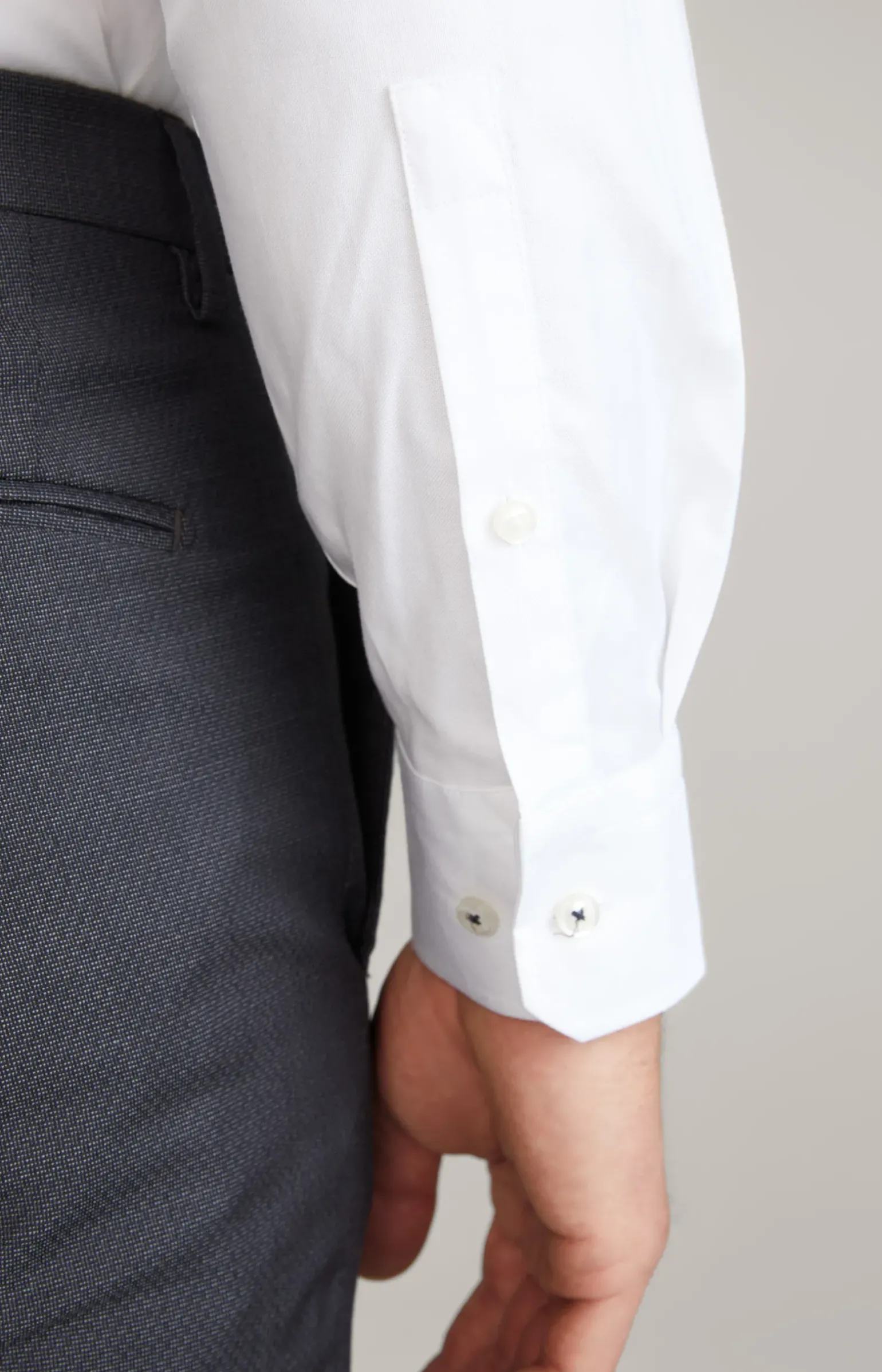 - Ärmelabschlüsse mit knöpfbaren Manschetten