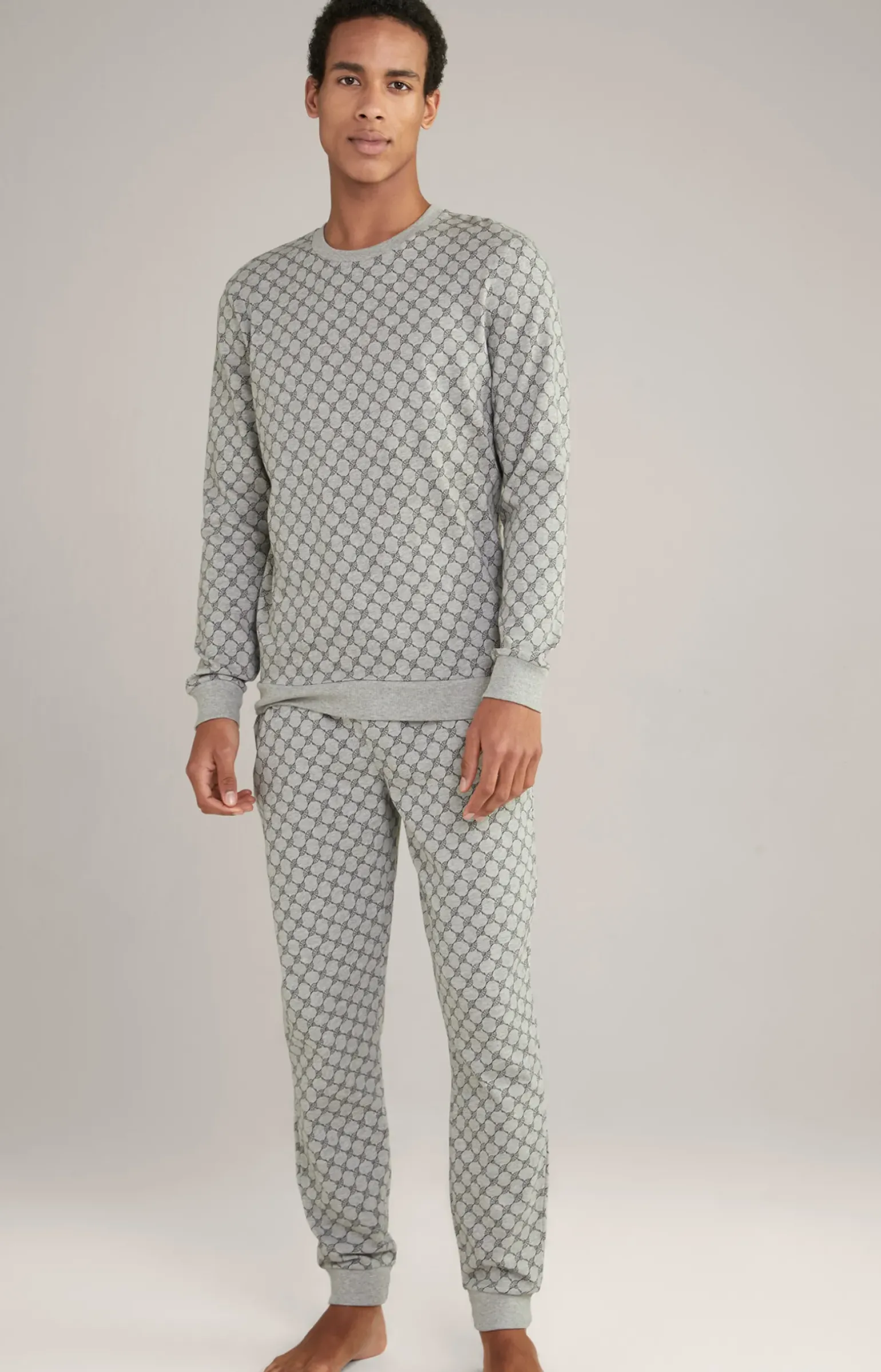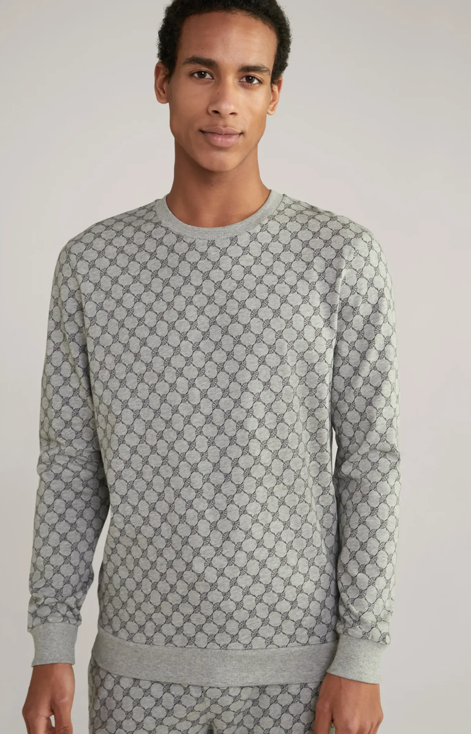 Loungewear Sweatshirt in Hellgrau Melange gemustert