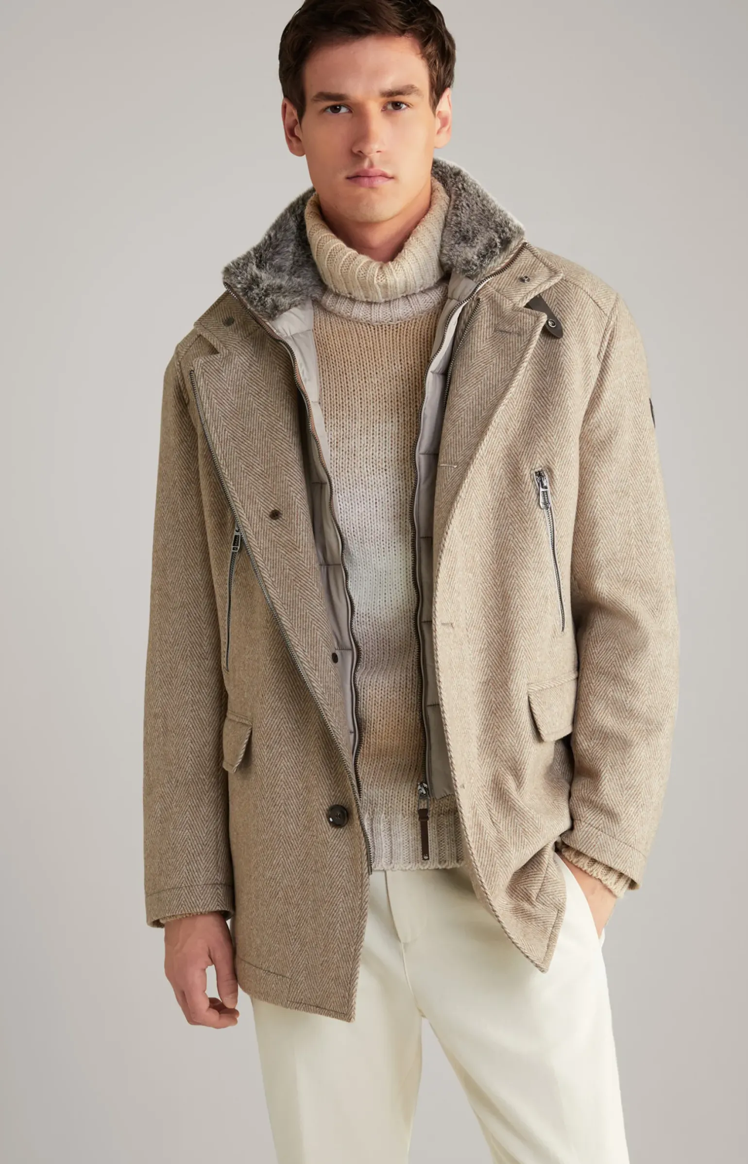 - Inlay-Stehkragen mit inwendigem Kunstpelz