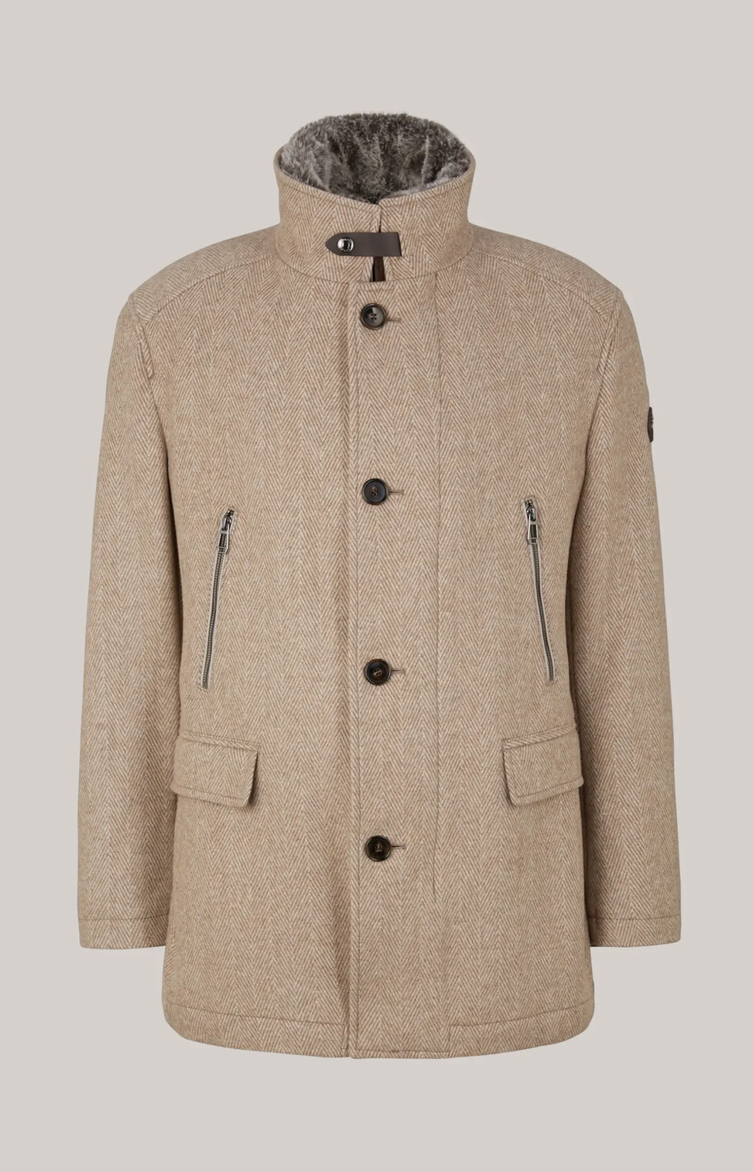- Mantel mit Stehkragen und Druckknopf-Schließe