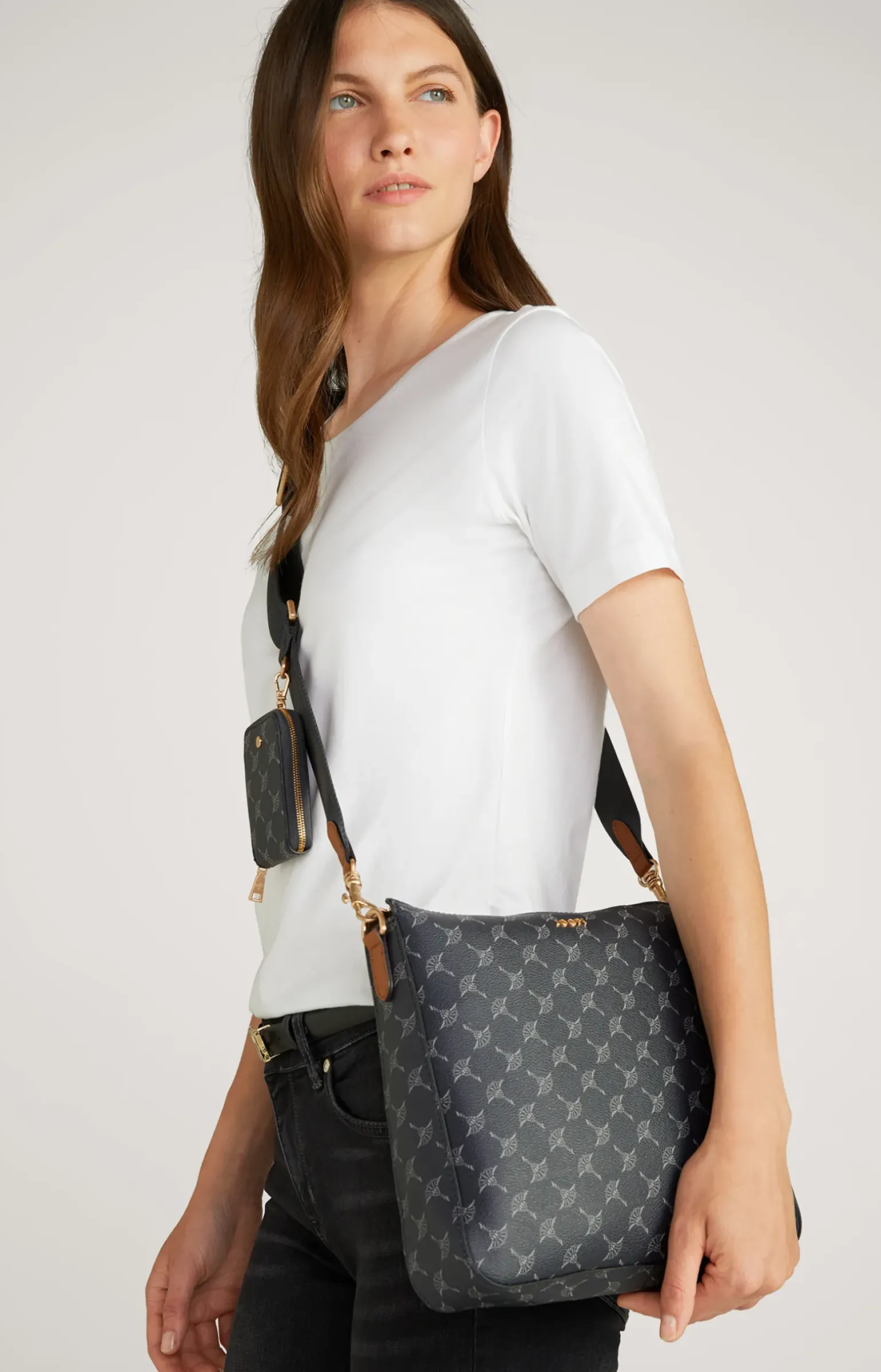- längenverstellbarer Crossbody-Riemen mit Karabiner