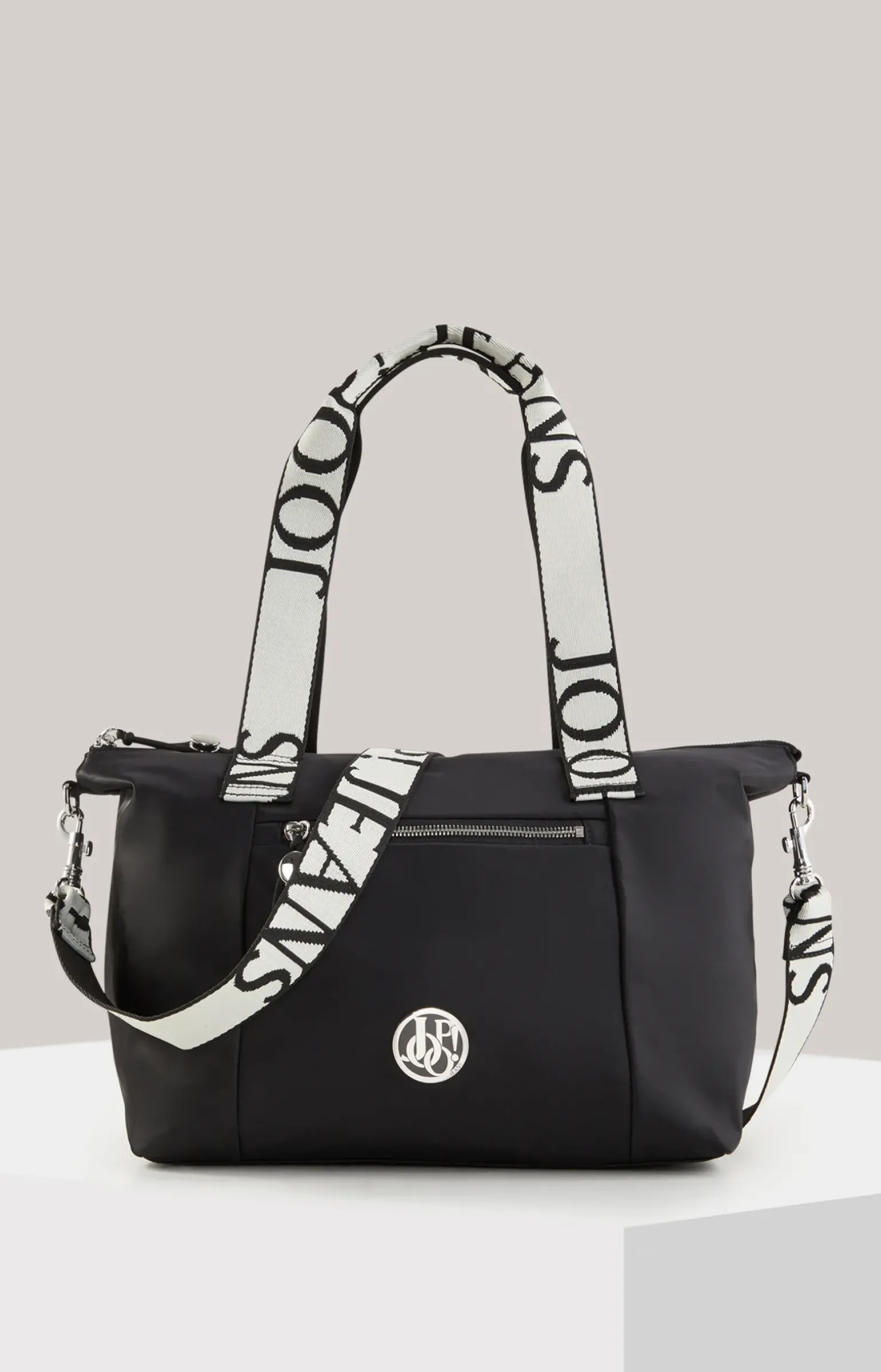 - 2 kurze Tragehenkel im Logo-Design