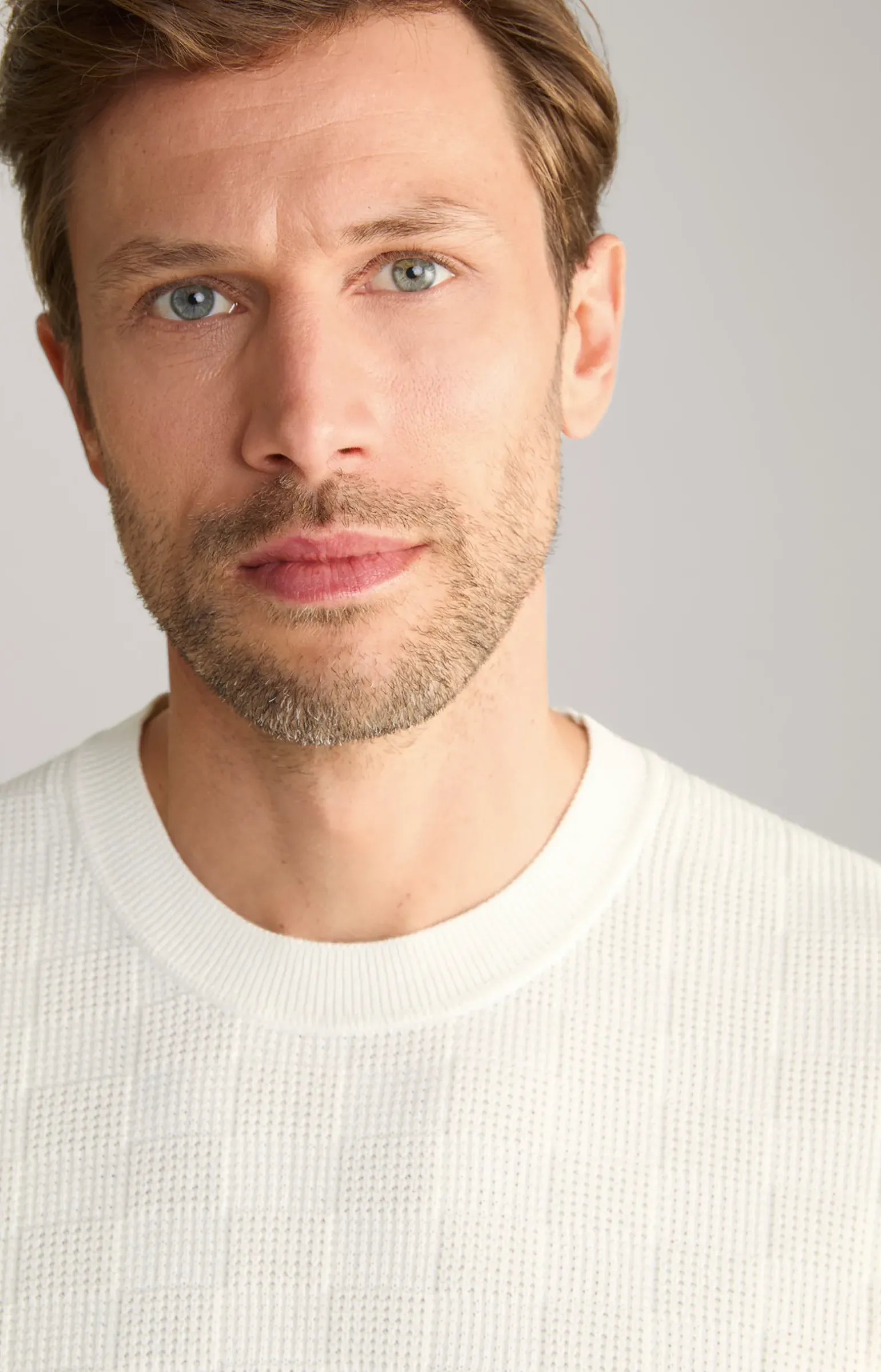 - klassischer Rundhalsausschnitt mit Rippblende