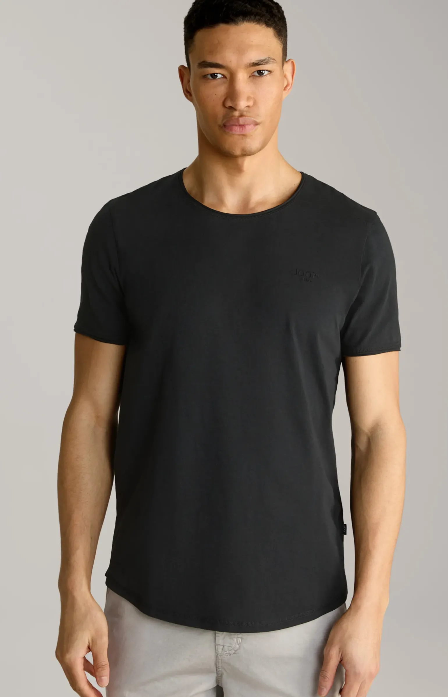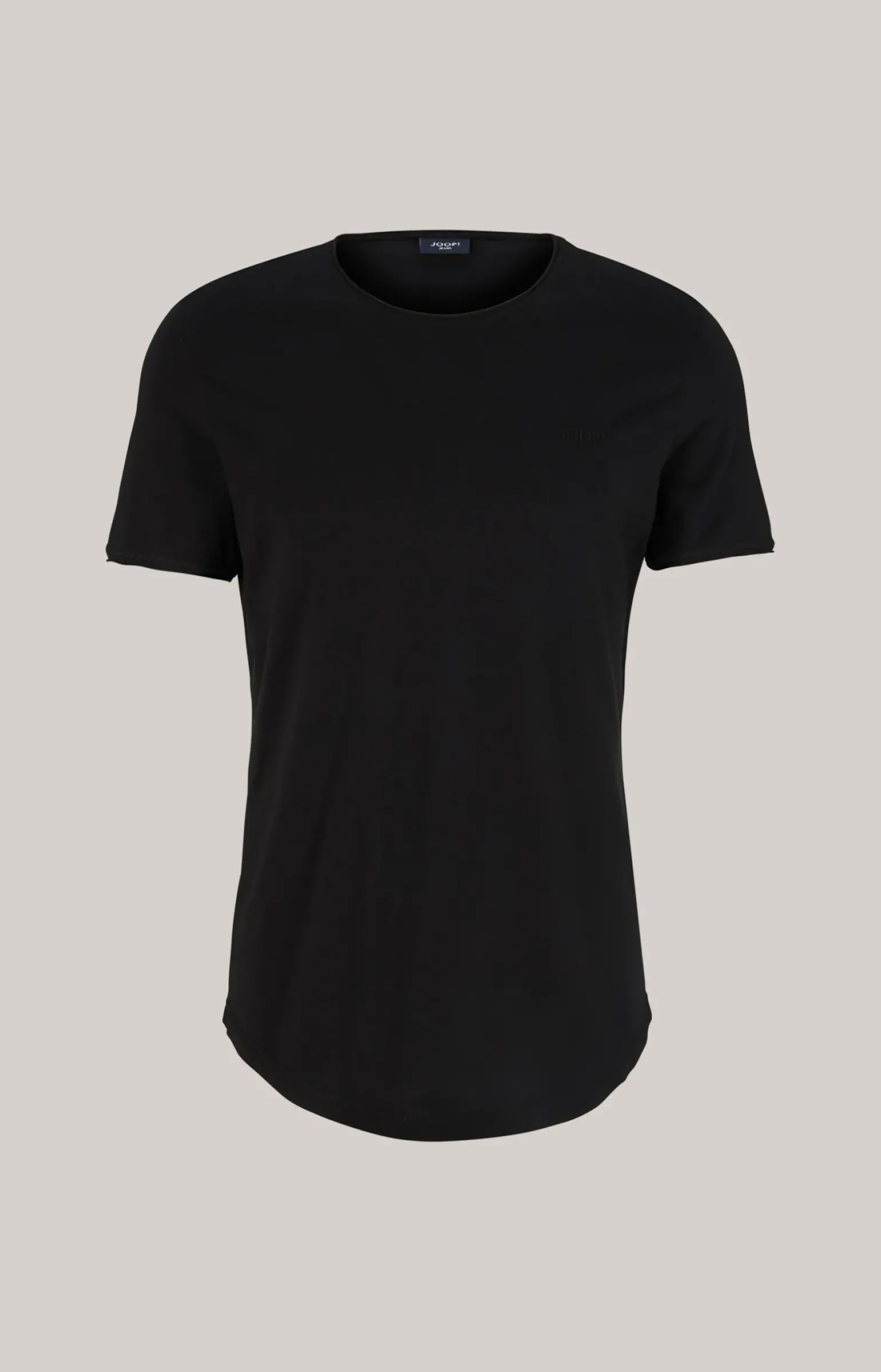 - klassischer Rundhalsausschnitt mit offener Rollkante
