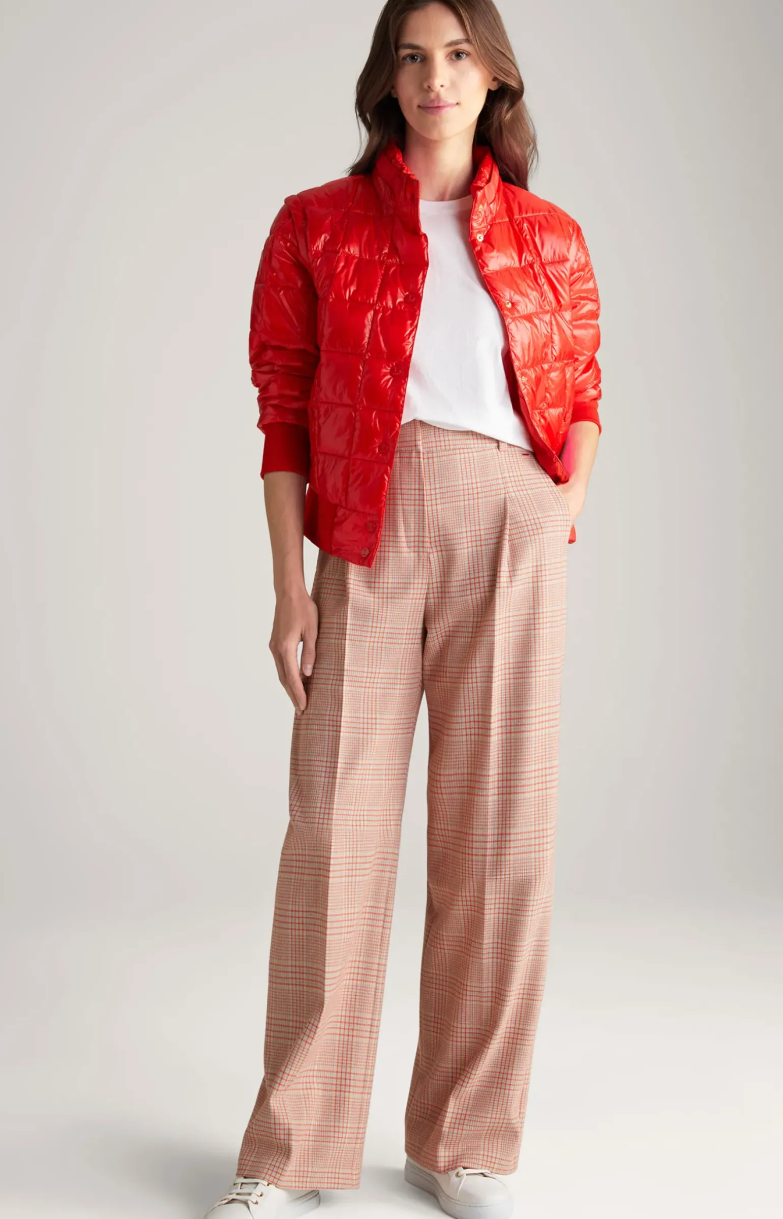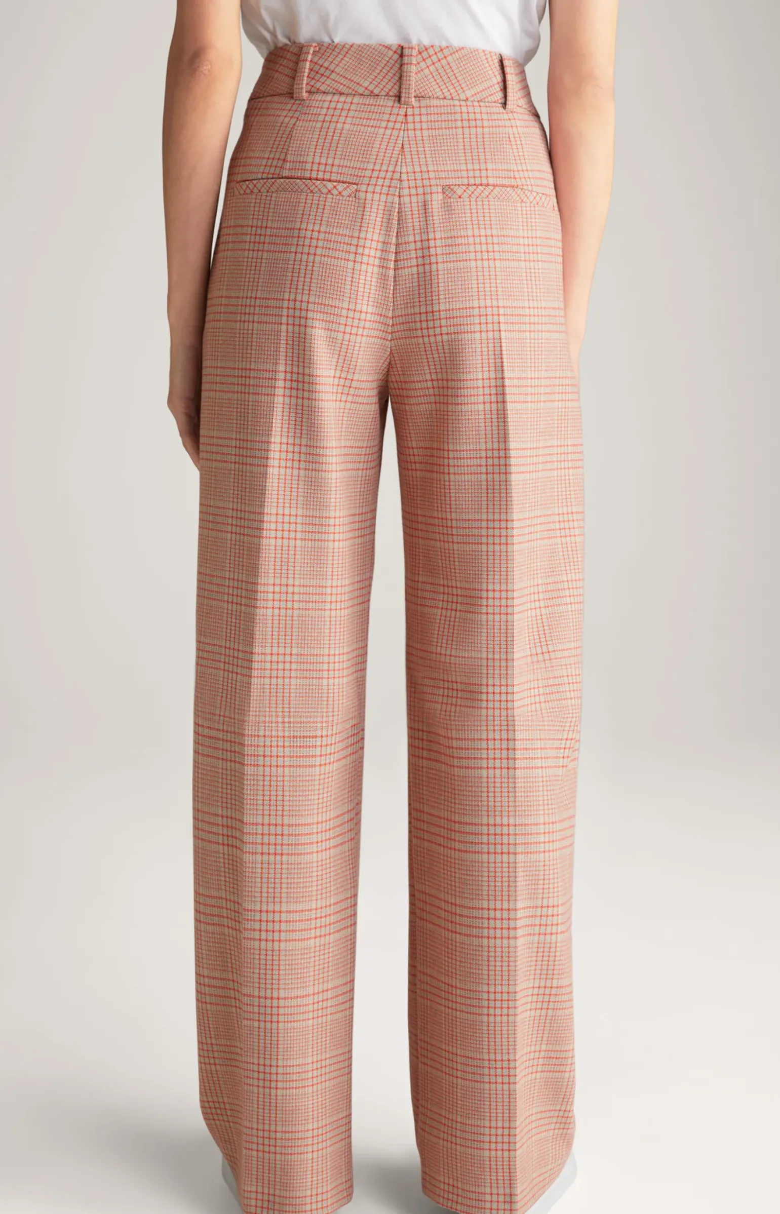 Twill-Hose in Beige/Rot kariert