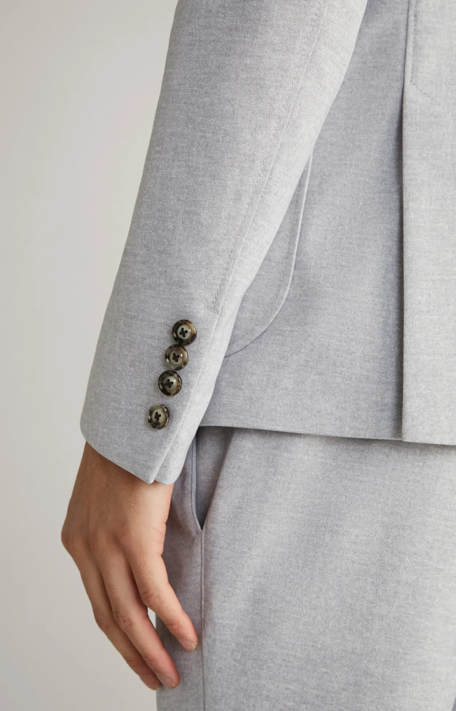 - eingesetzte Ärmel mit Zierschlitz und 4 Knöpfen