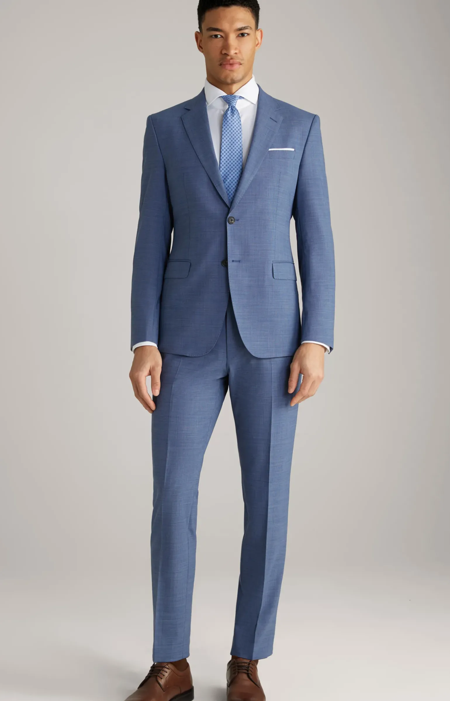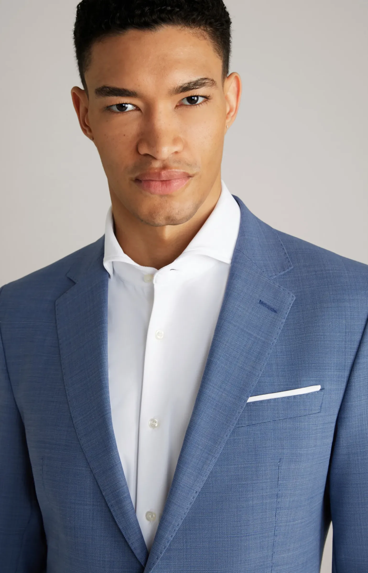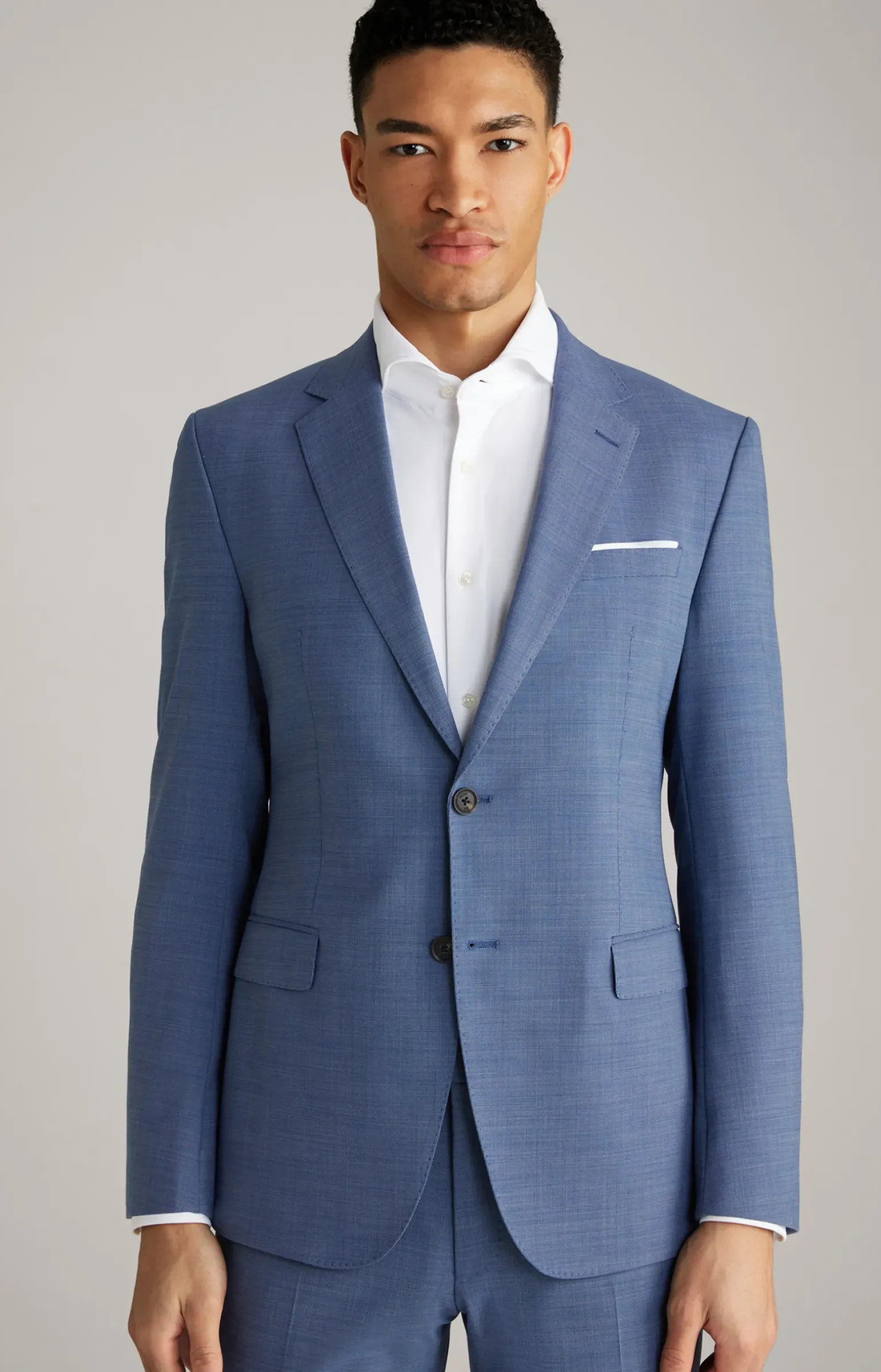 - eine angeschrägte Brustleistentasche mit angedeutetem Einstecktuch