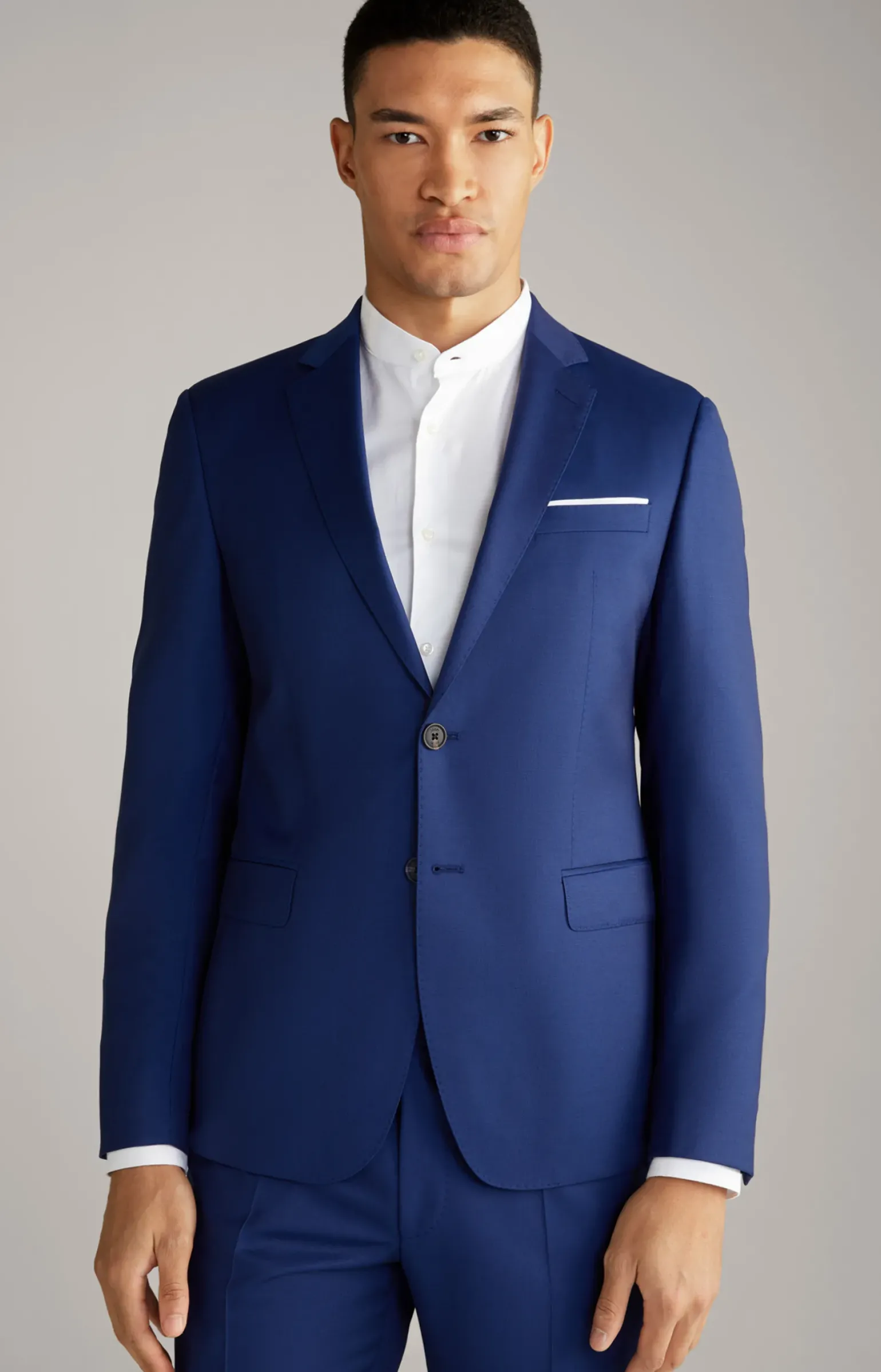 - eine angeschrägte Brustleistentasche mit angedeutetem Einstecktuch