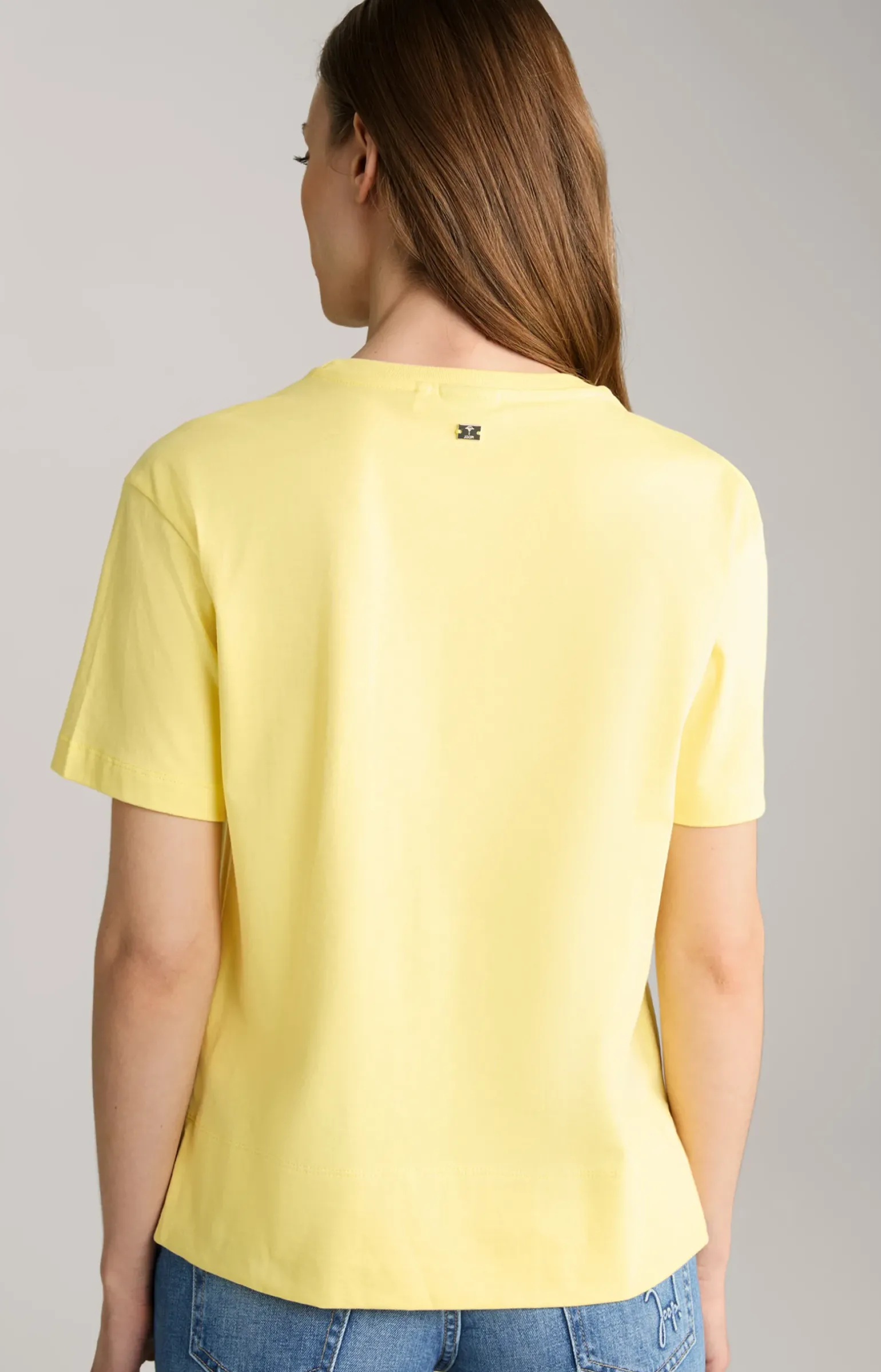 - T-Shirt mit Rundhalsausschnitt, rückseitig mit Logo-Plakette