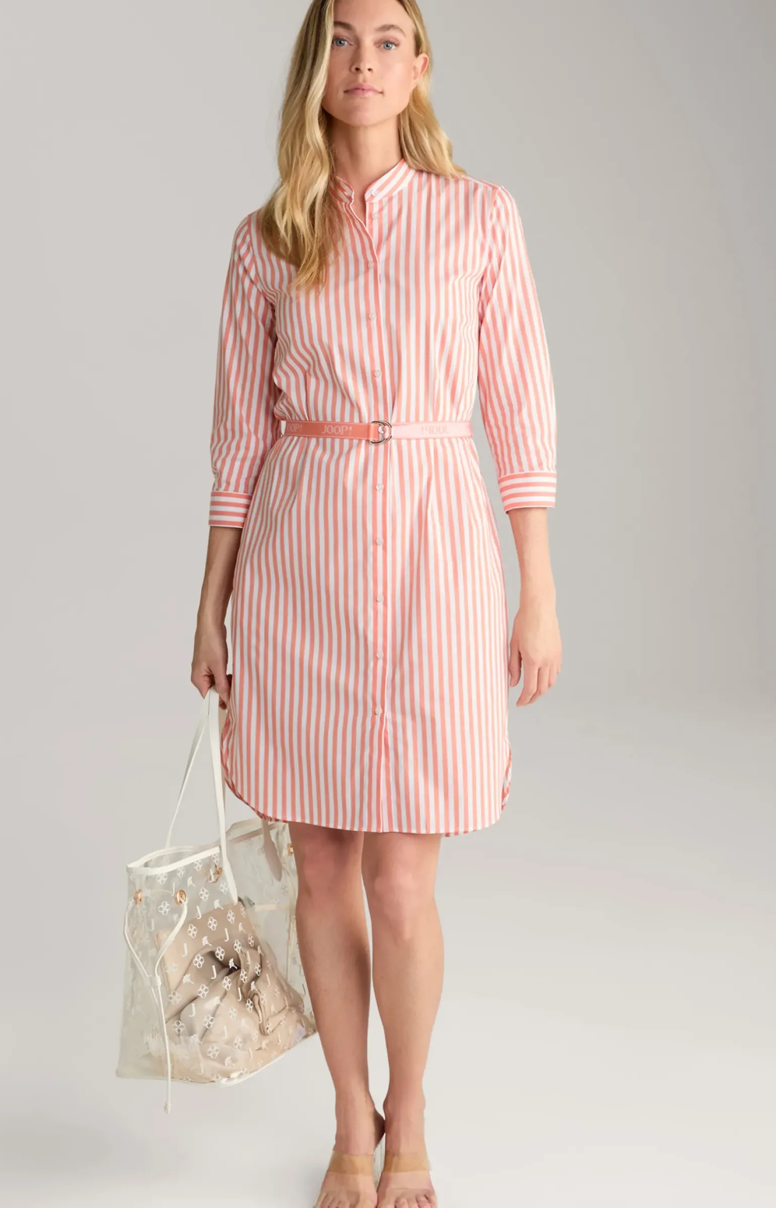 Blusen-Kleid in Orange/Weiß gestreift