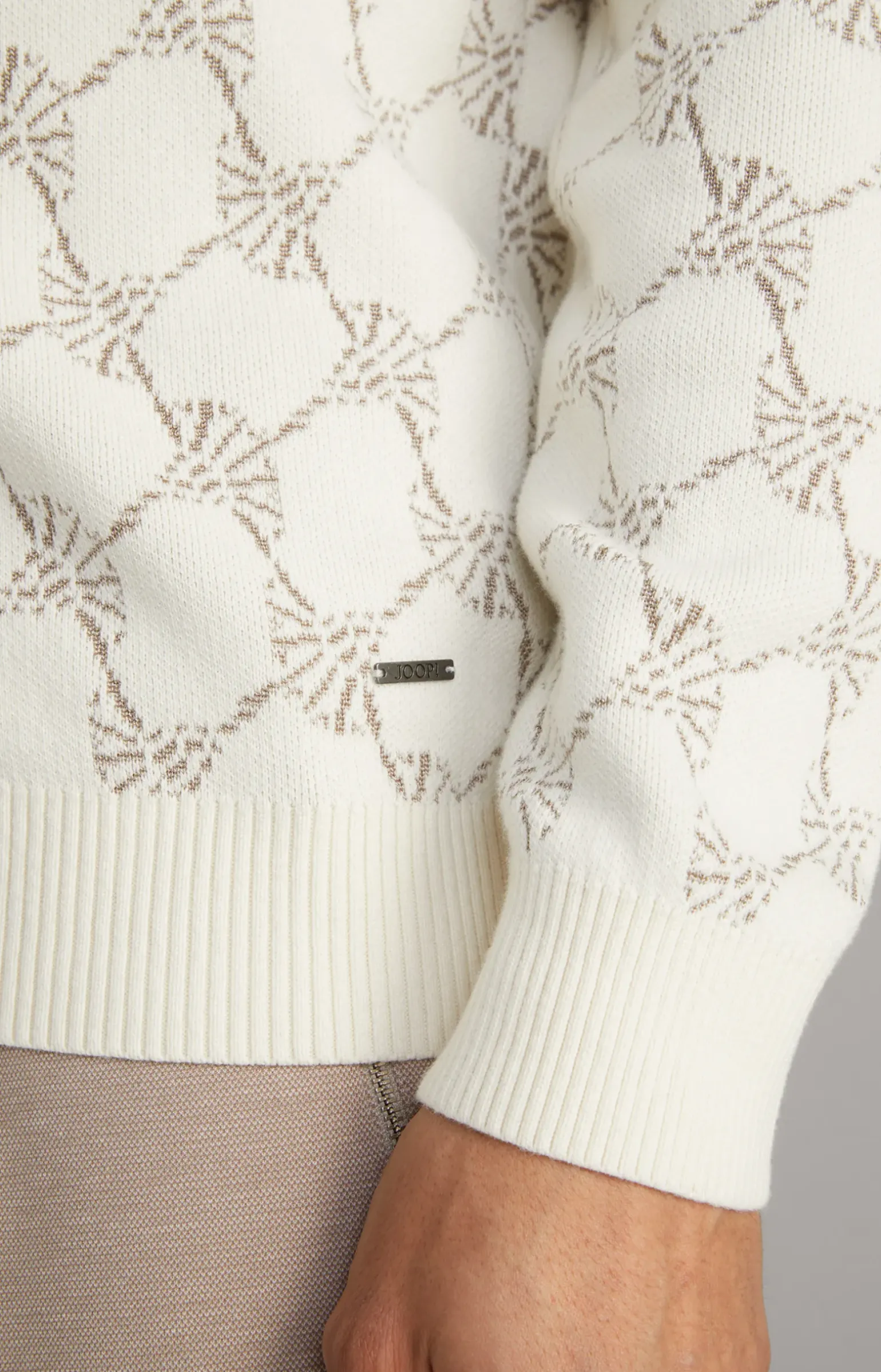 - gerader, gerippter Saumabschluss mit Logo-Plakette