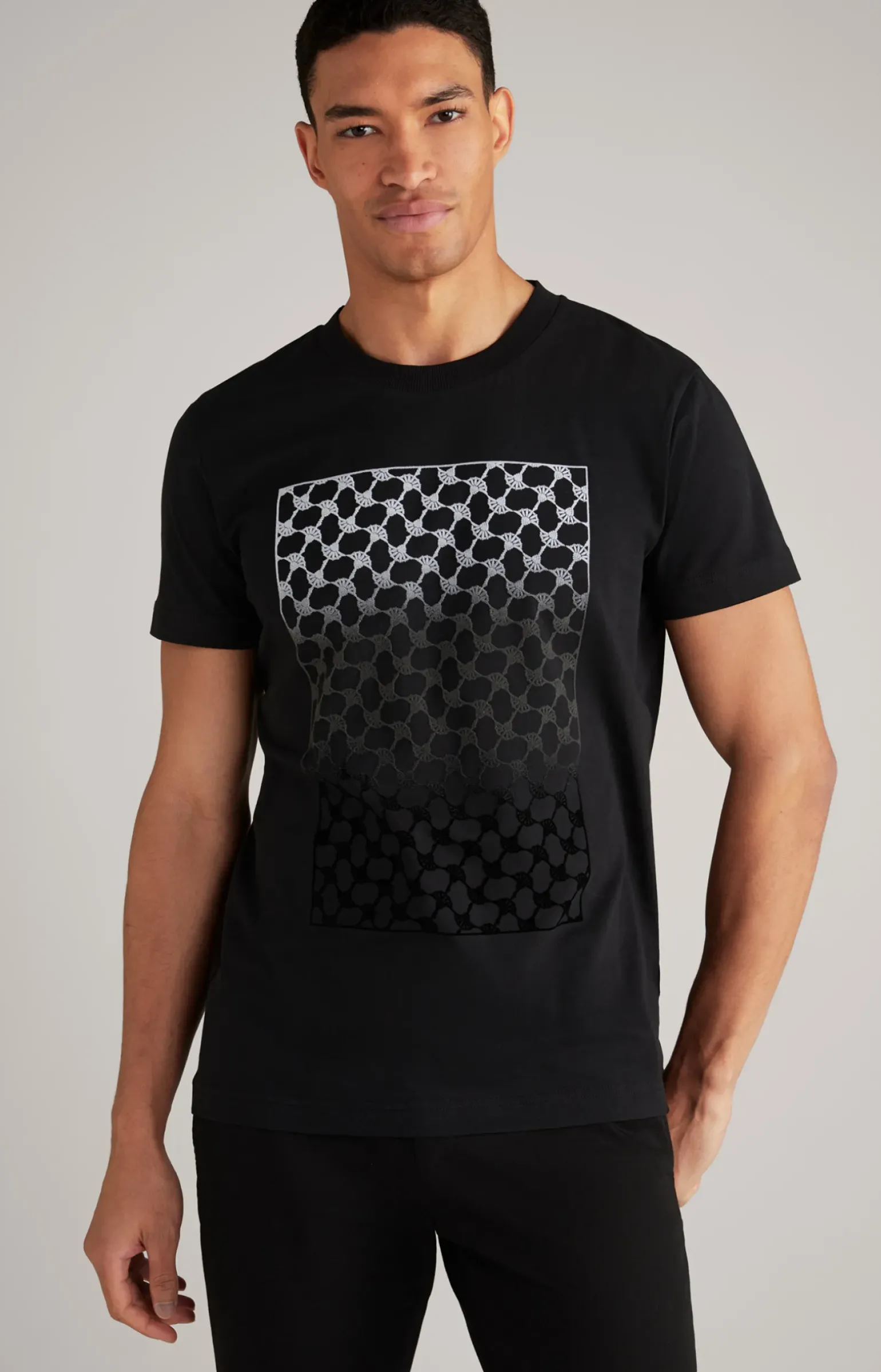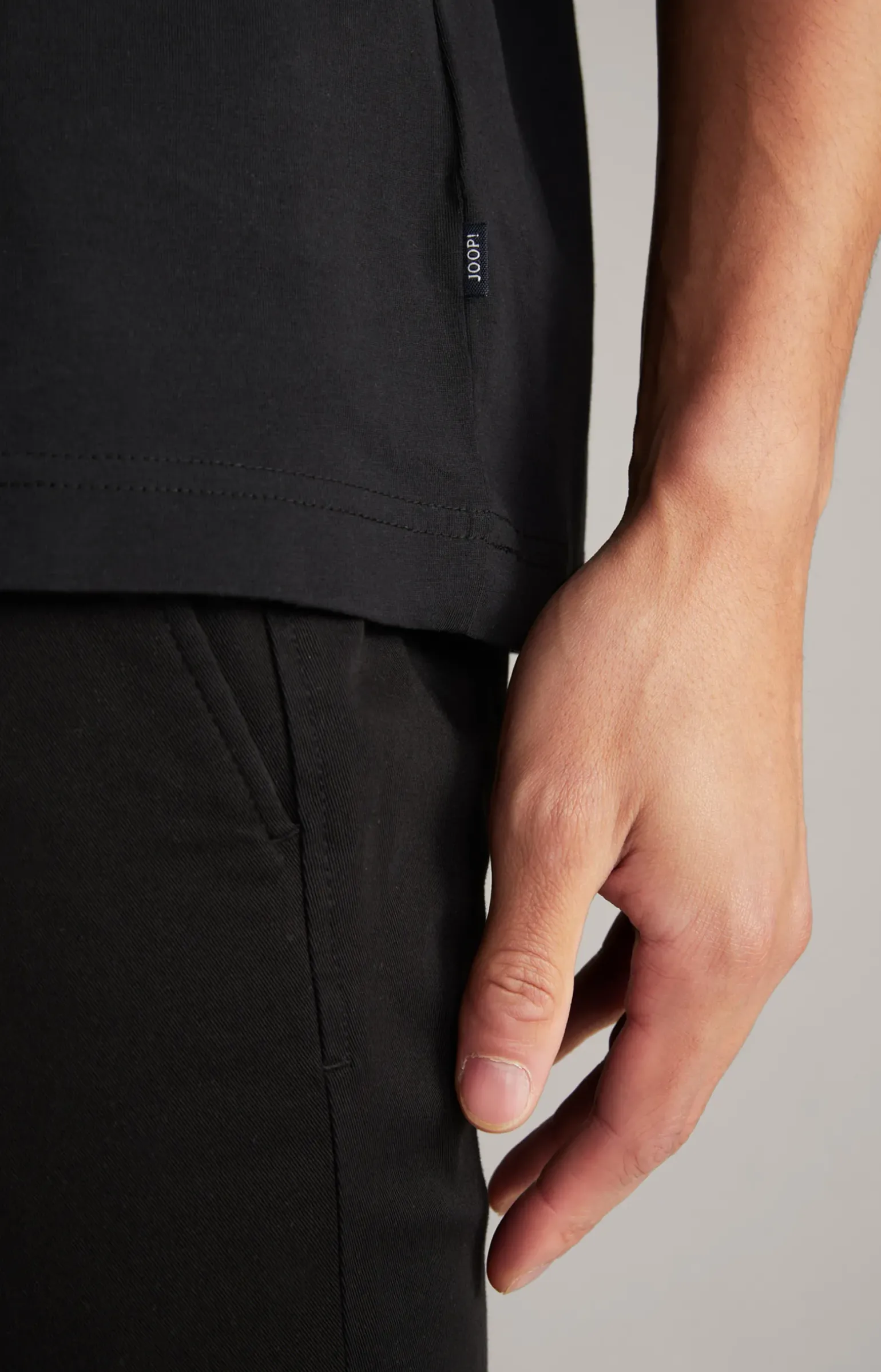 - klassischer Rundhalsausschnitt mit feiner Rippblende
