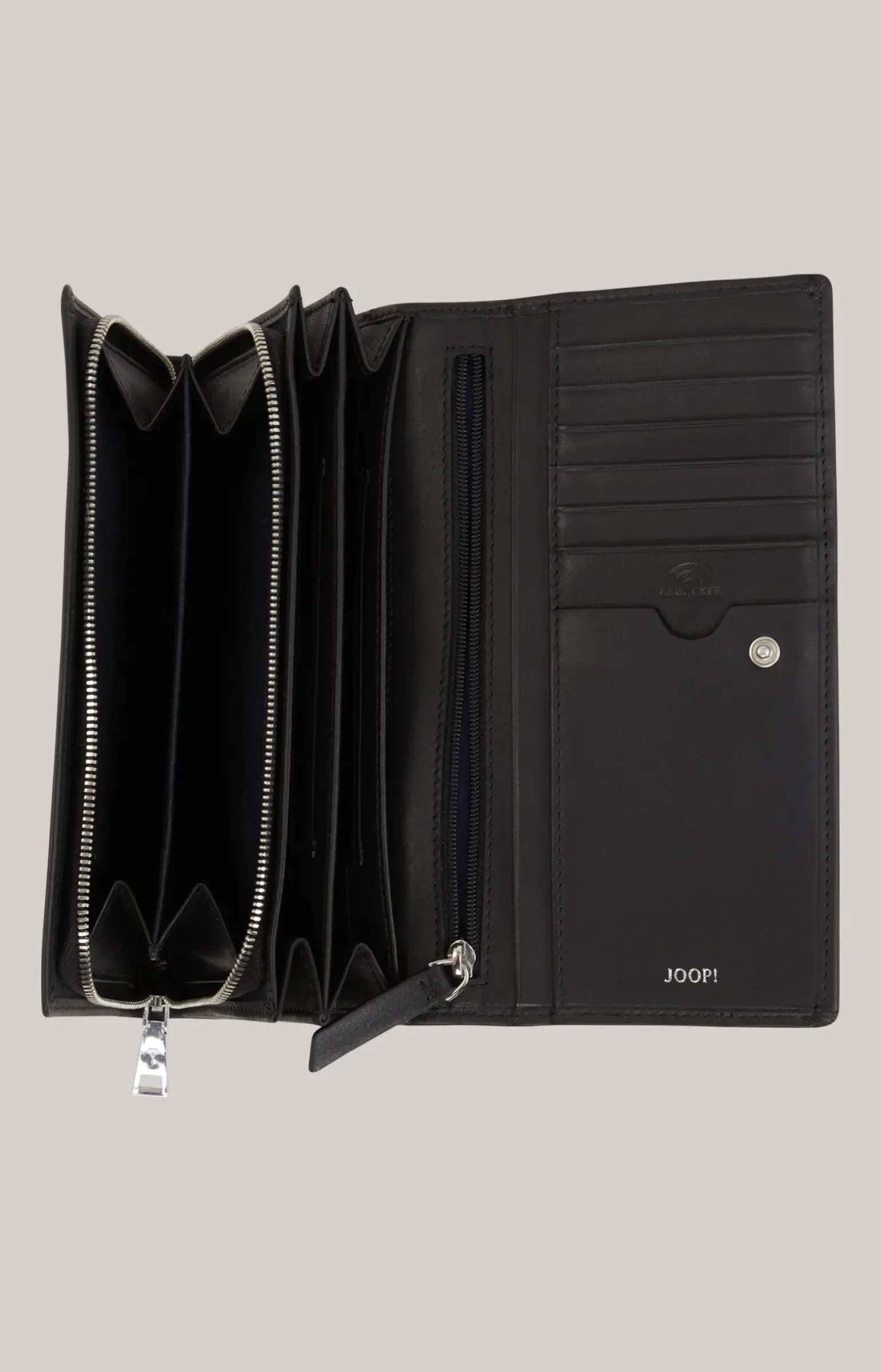 - 3 Geldscheinfächer, 13 Kartenfächer, 2 Steckfächer und ein Zipperfach