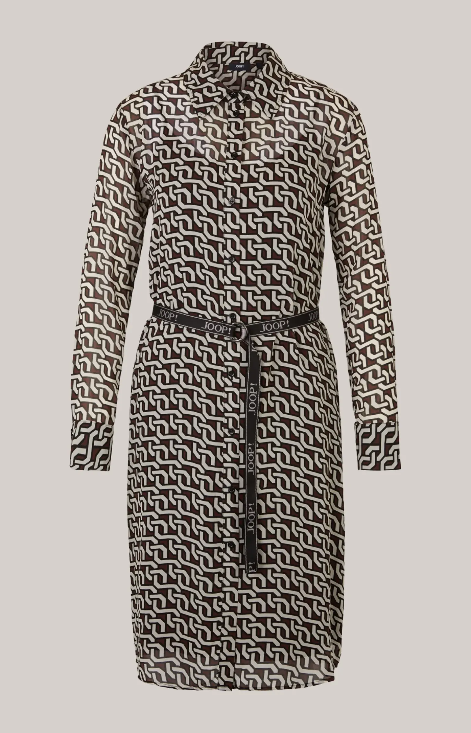Georgette-Hemdblusenkleid in Braun/Creme/Schwarz gemustert