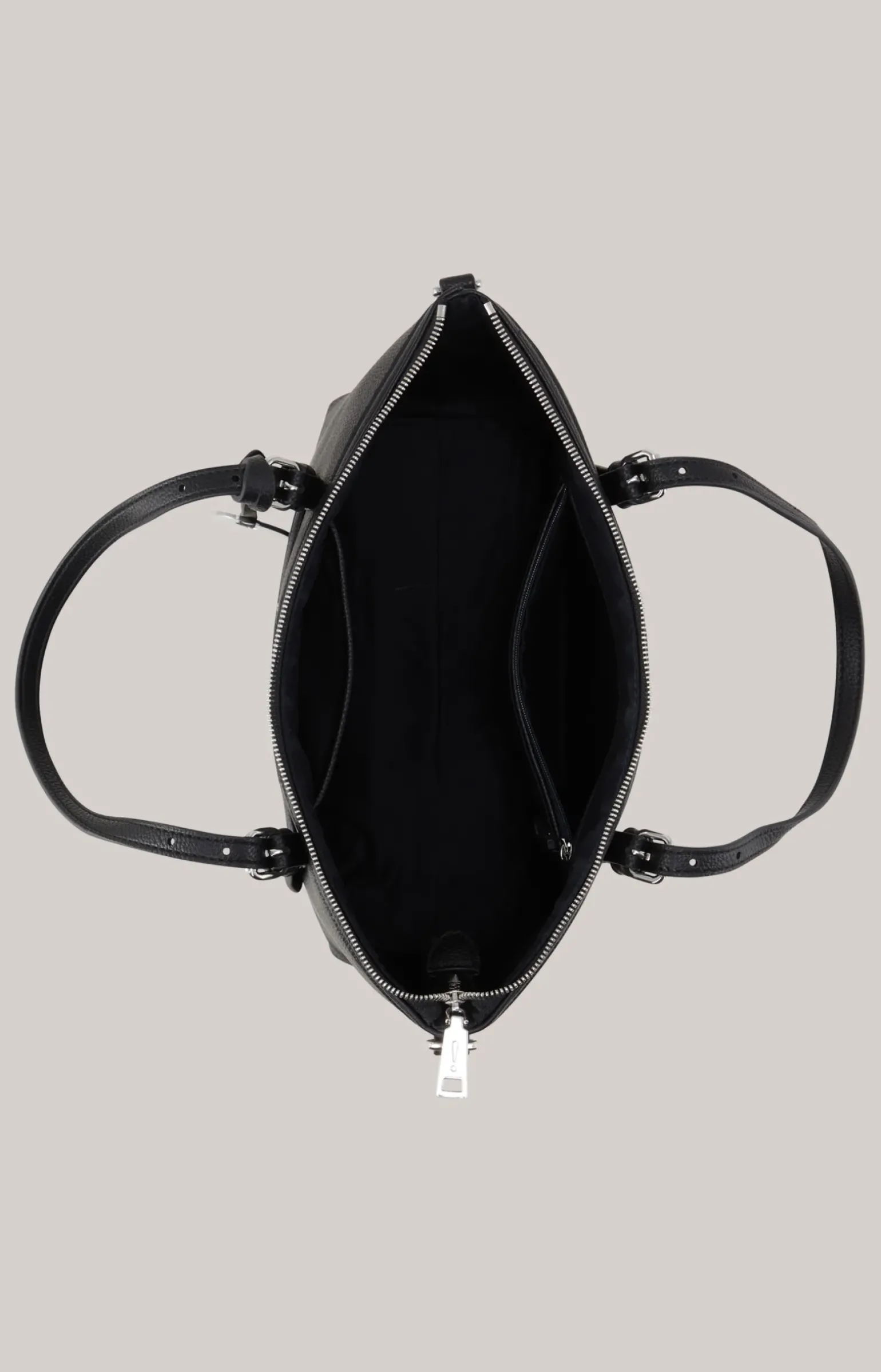 - Zip- und Steckfach sowie Logo-Plakette inwendig