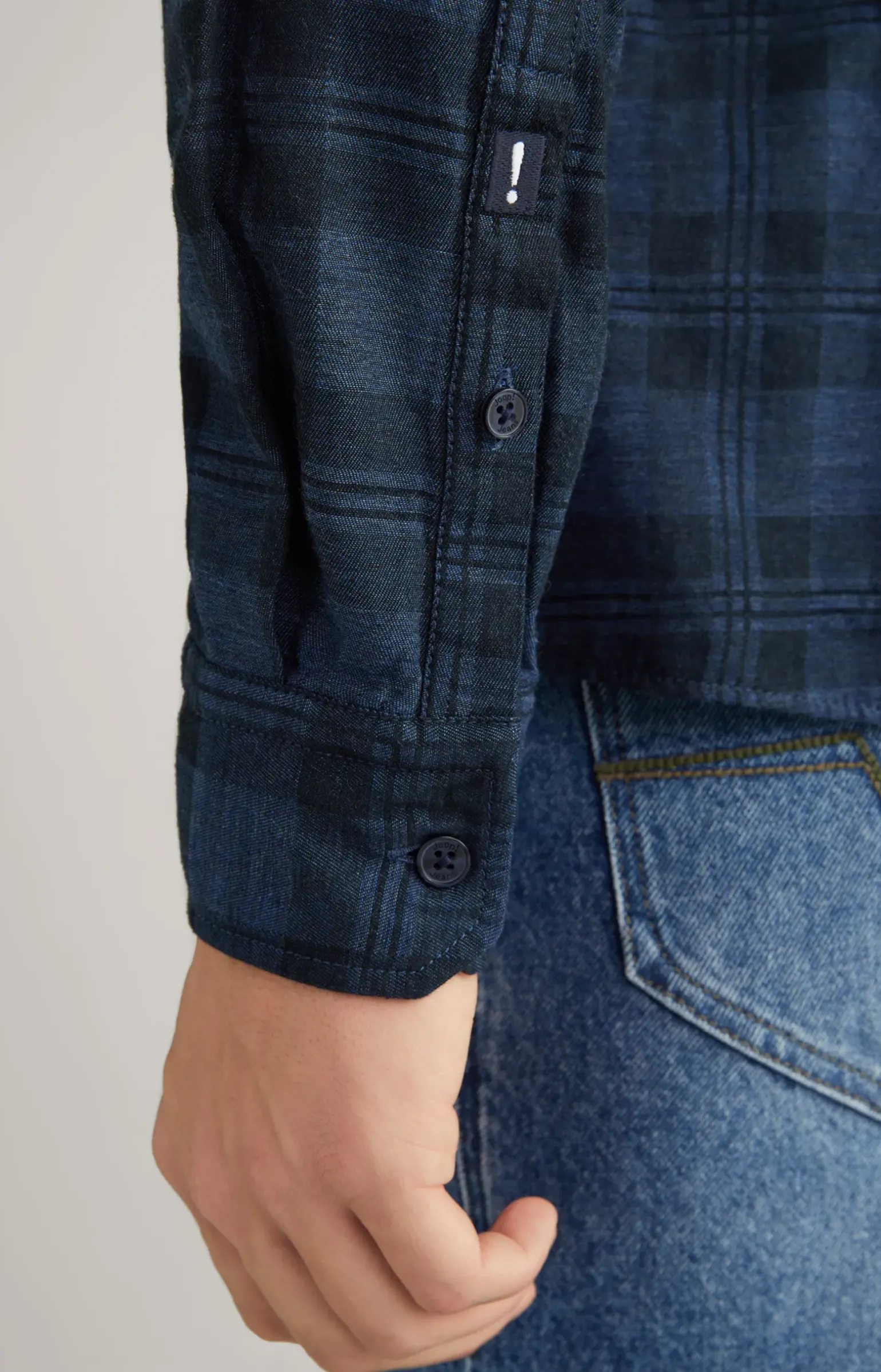 - Ärmel mit abgeschrägter Ein-Knopf-Manschette und knöpfbarem Schlitz, links mit !- Signé
