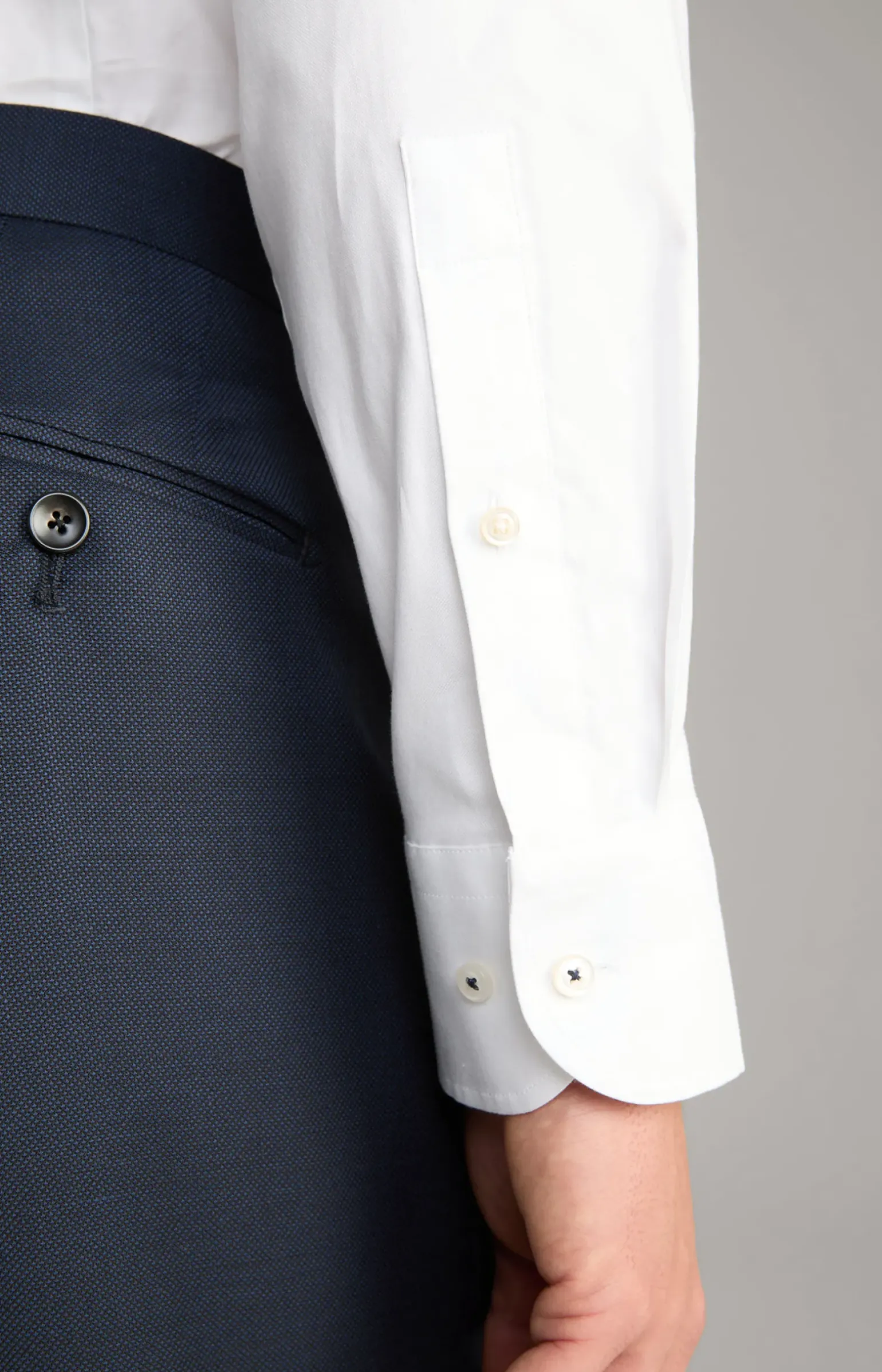 - Ärmel mit knöpfbarer Manschette, Dachschlitz und Cornflower-Signé