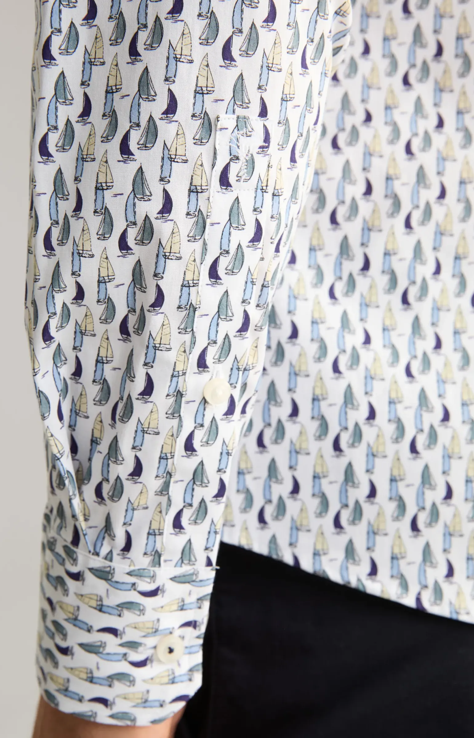 - Ärmel mit knöpfbarer Manschette, Dachschlitz und Cornflower-Signé