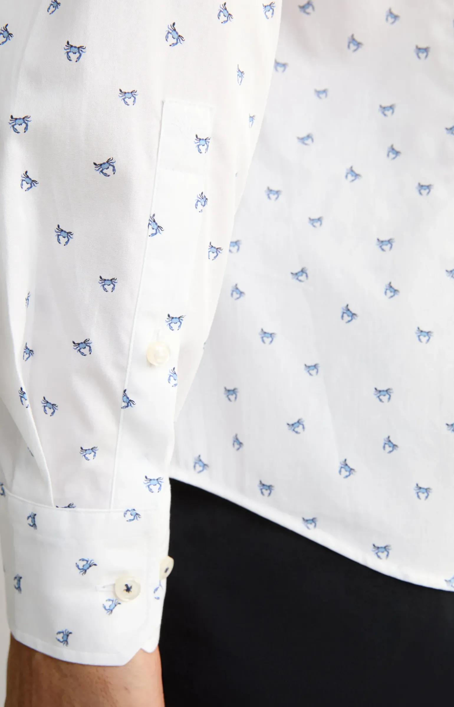 - Ärmel mit knöpfbarer Manschette, Dachschlitz und Cornflower-Signé