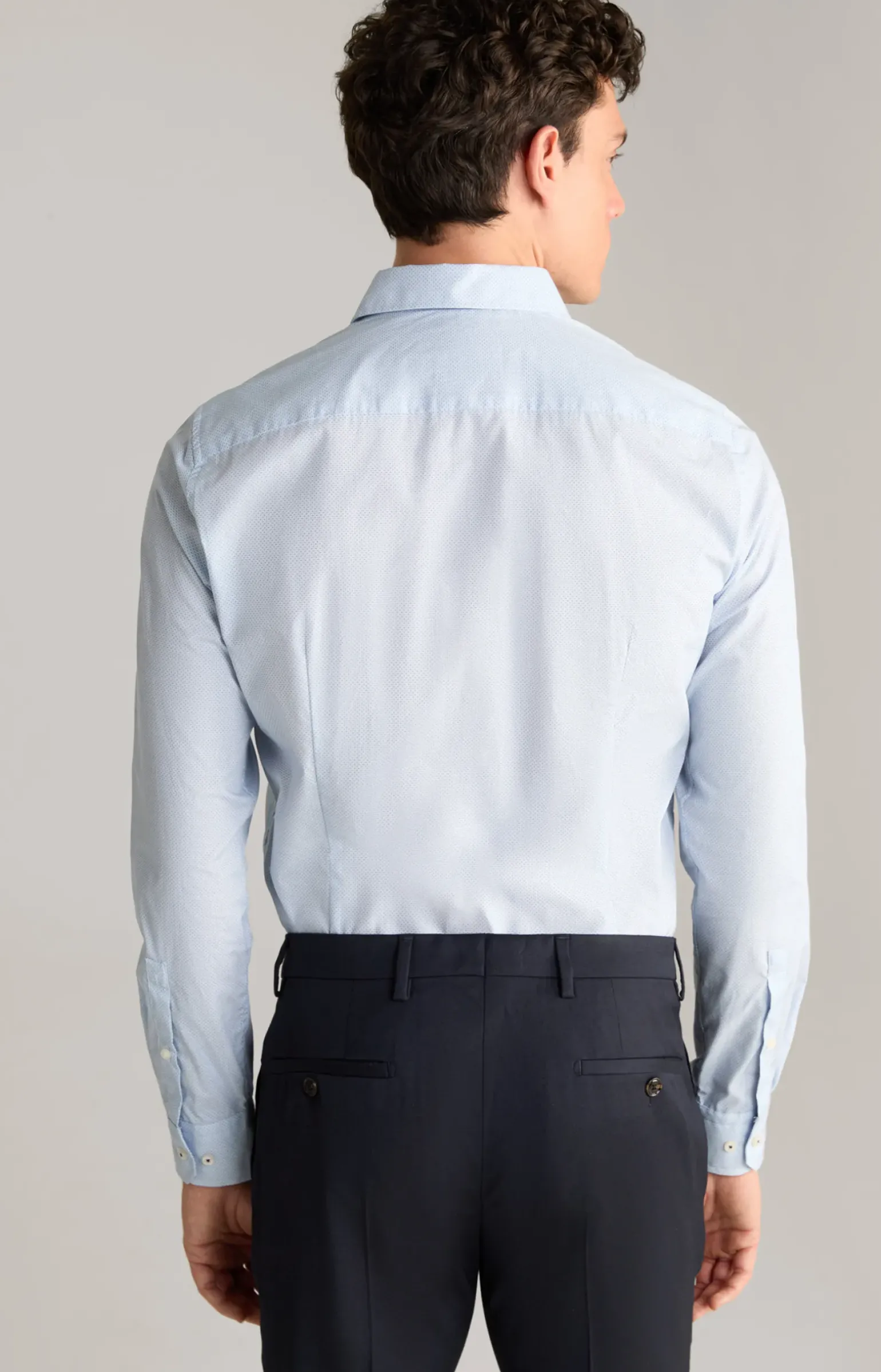 - Ärmel mit abgeschrägter 2-Knopf-Manschette und knöpfbarem Schlitz, links mit Cornflower-Stitching