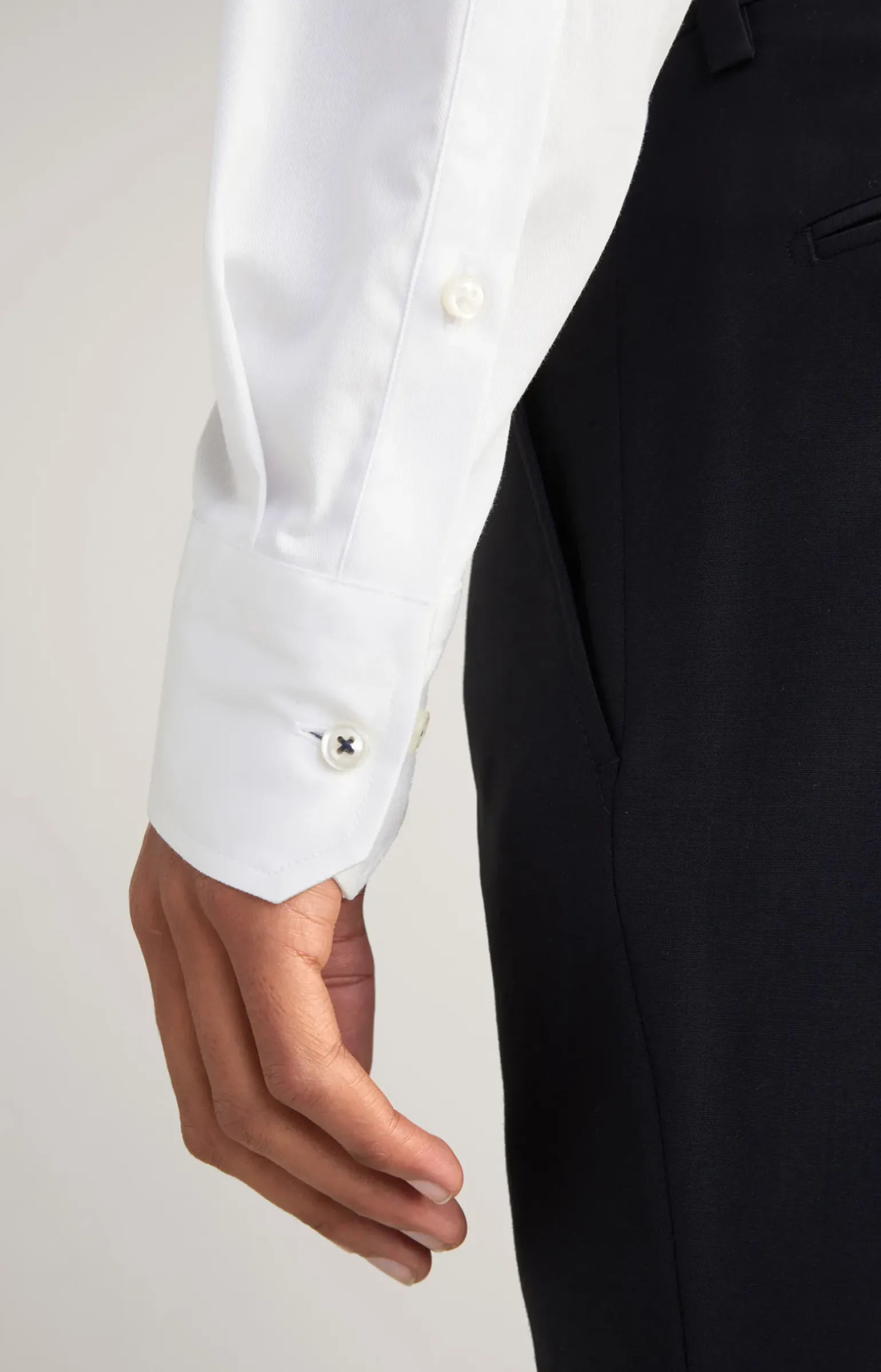 - Ärmelabschlüsse mit knöpfbaren Manschetten