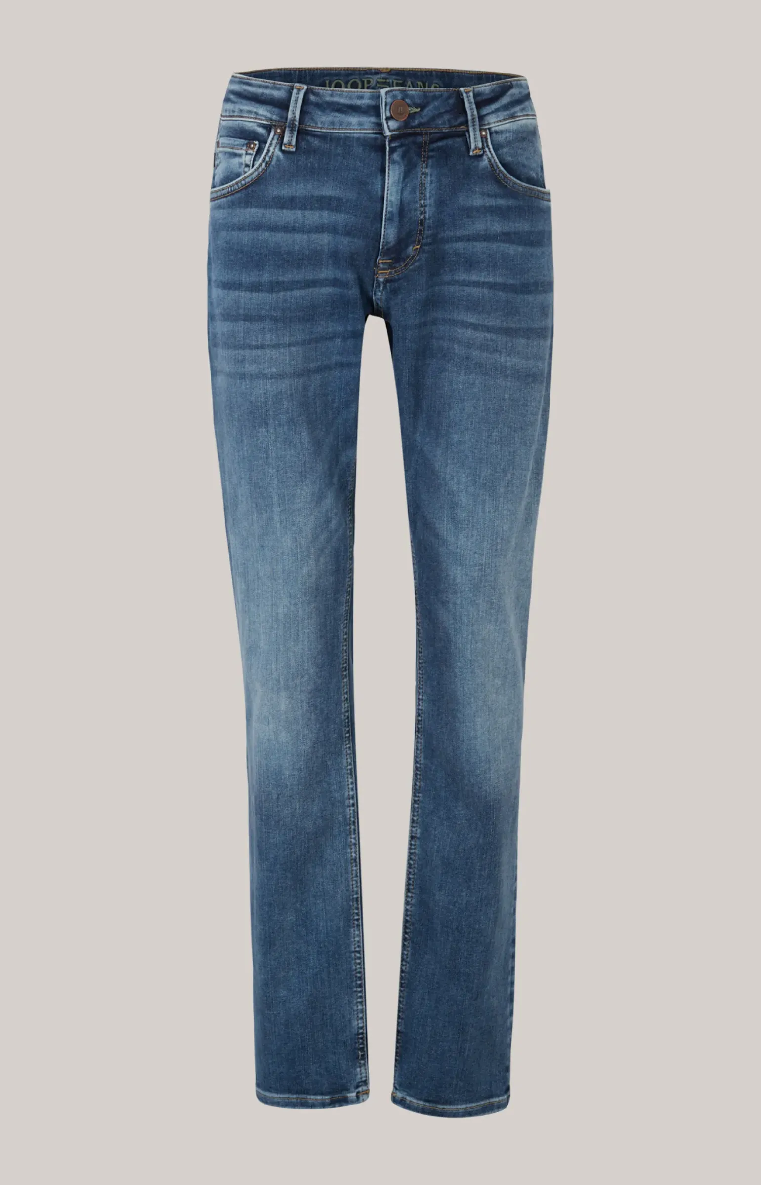 - 5-Pocket-Stil mit 2 Eingrifftaschen, einer Coin-Pocket und 2 aufgesetzten Gesäßtaschen mit Stitchings