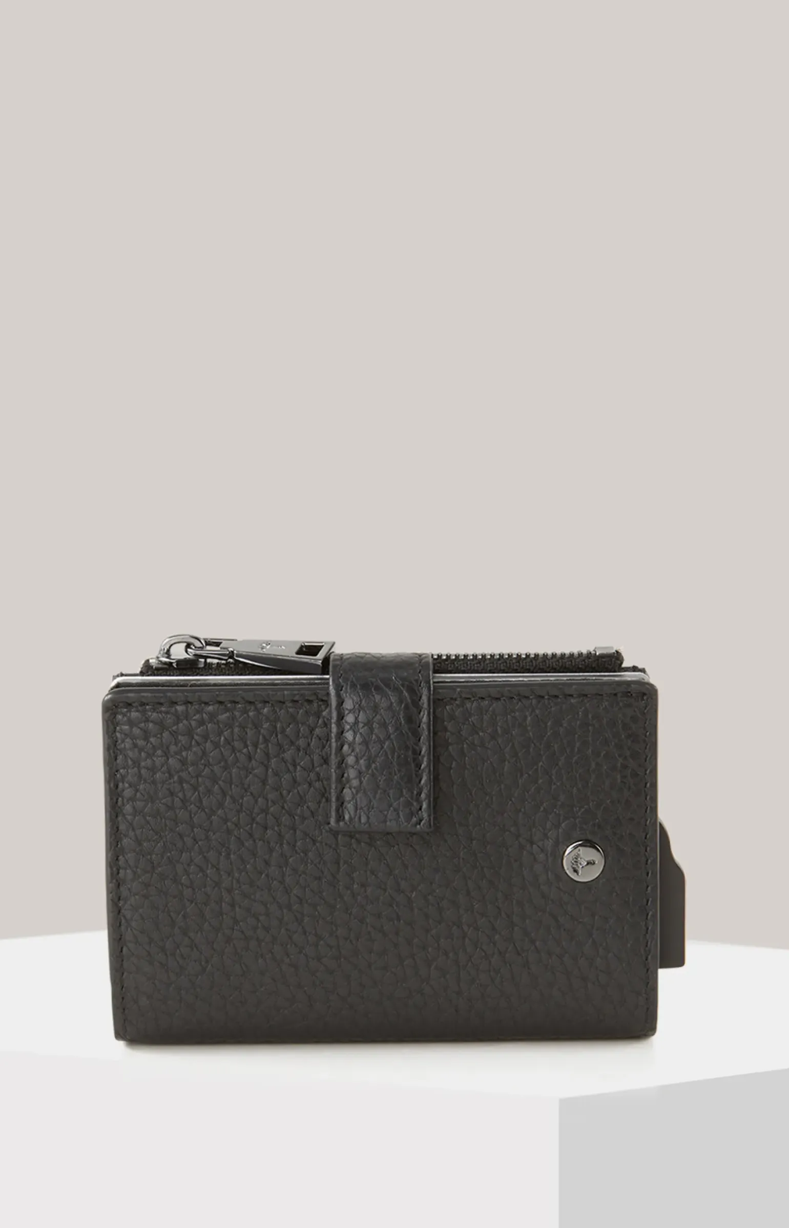 - ein zippbares Münzfach mit Logo-Anhänger und -Prägung inwendig