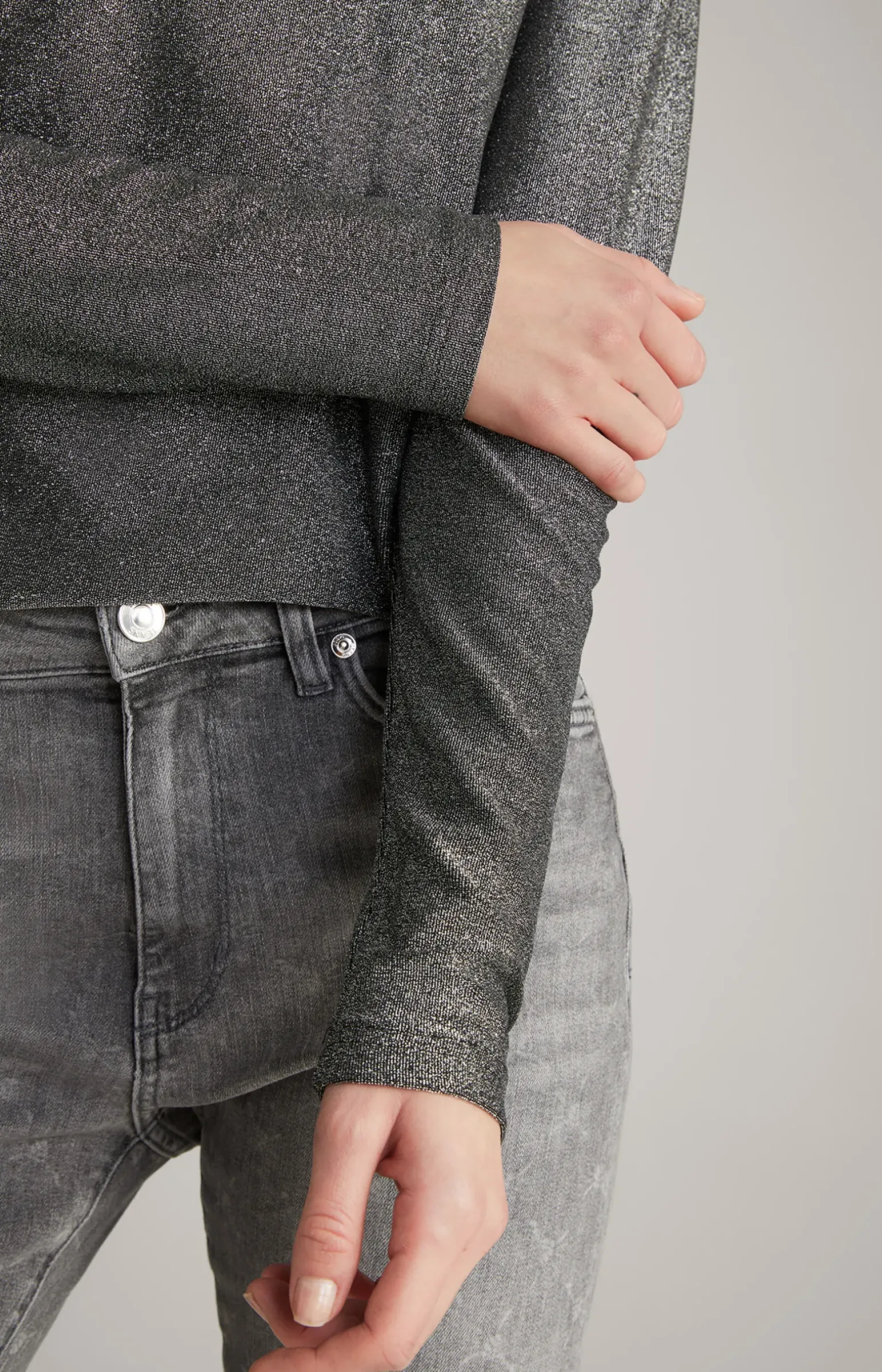 Long-Bluse in Lurex-Qualität