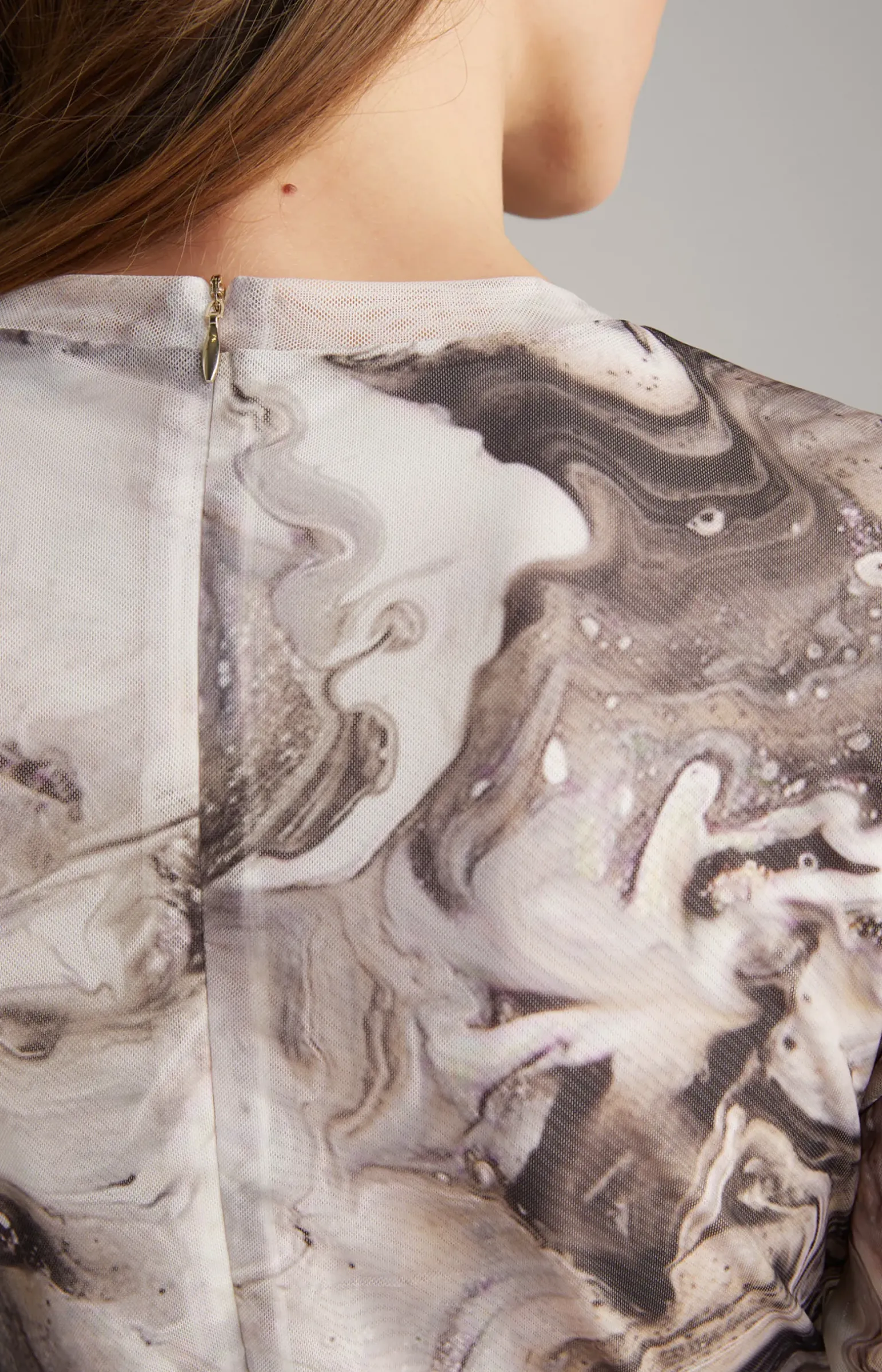 - langes Mesh-Kleid im Allover-Print