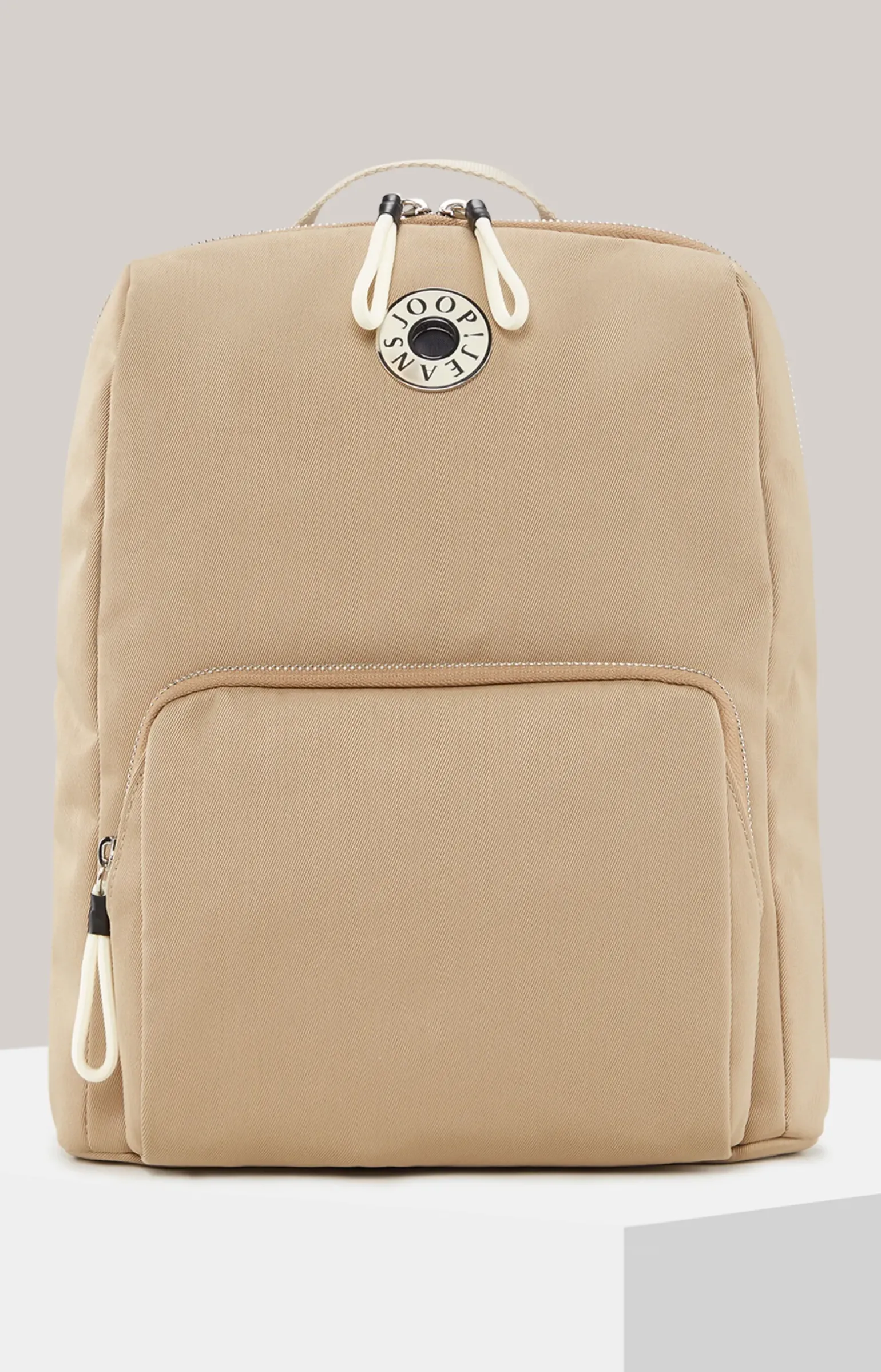 - Zip-Fach vorder- und rückseitig mit Kordelstopper