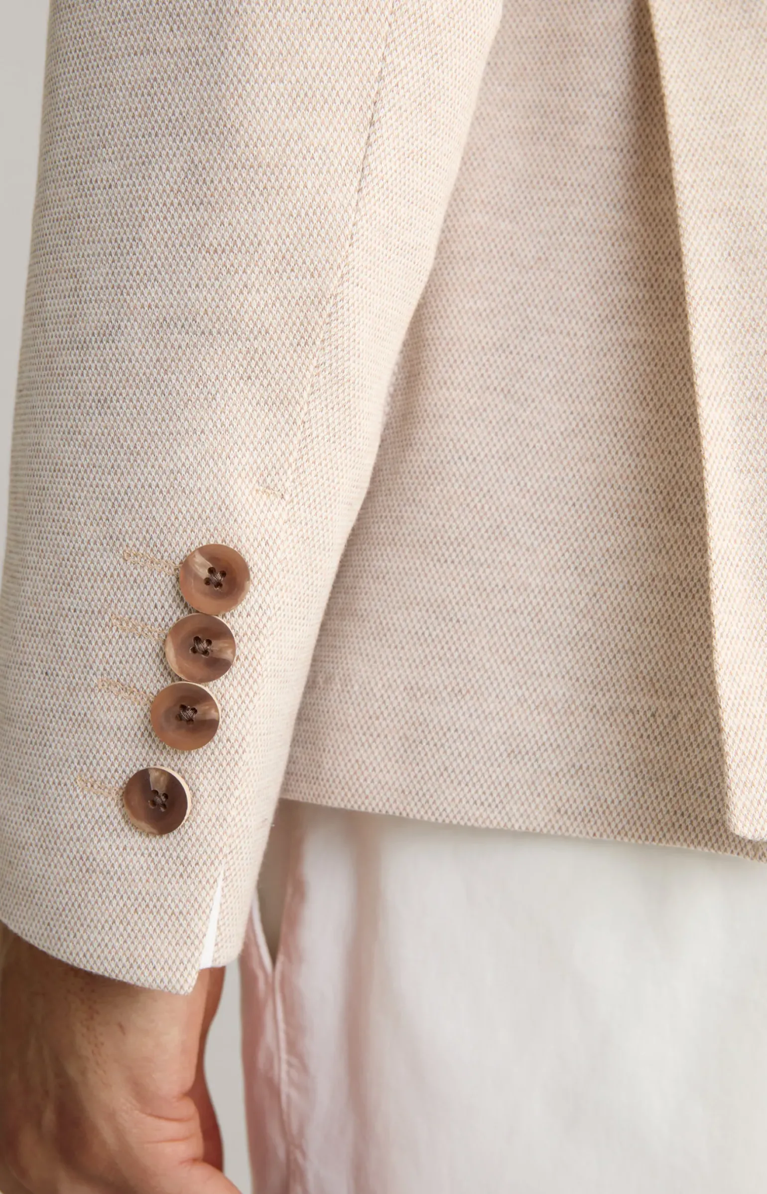 - eingesetzte Ärmel mit Zierschlitz und 4 Knöpfen