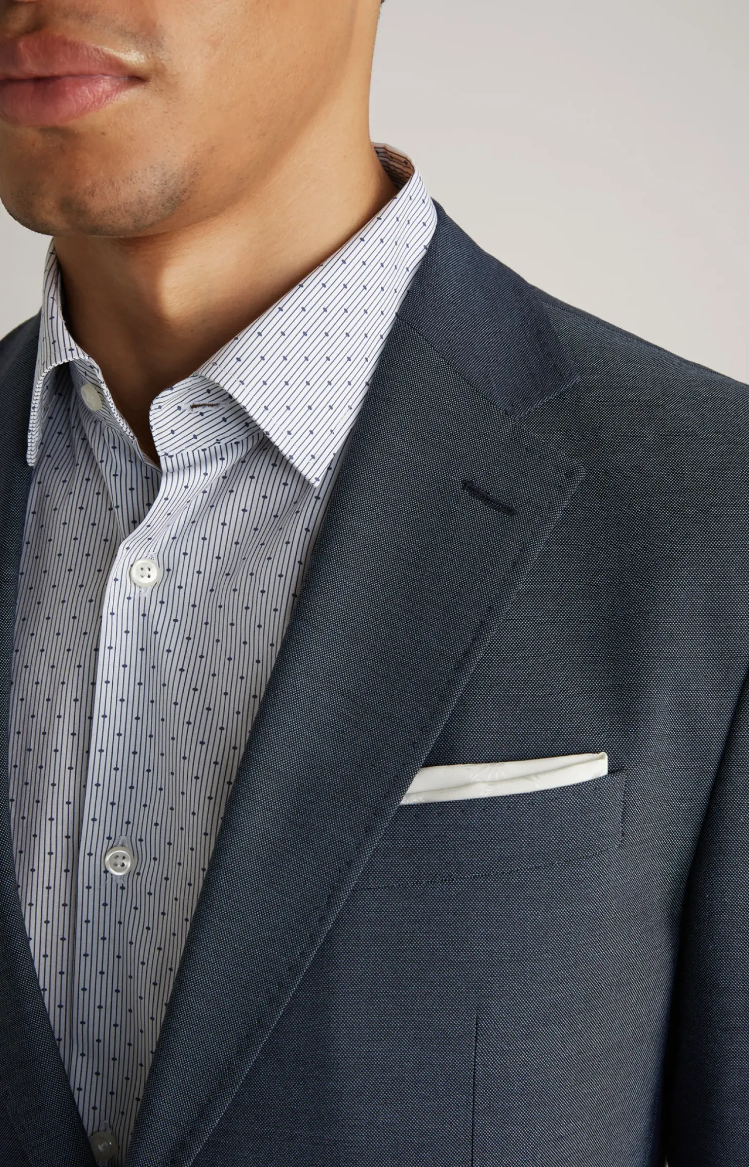 - klassisches Revers mit angedeutetem Knopfloch