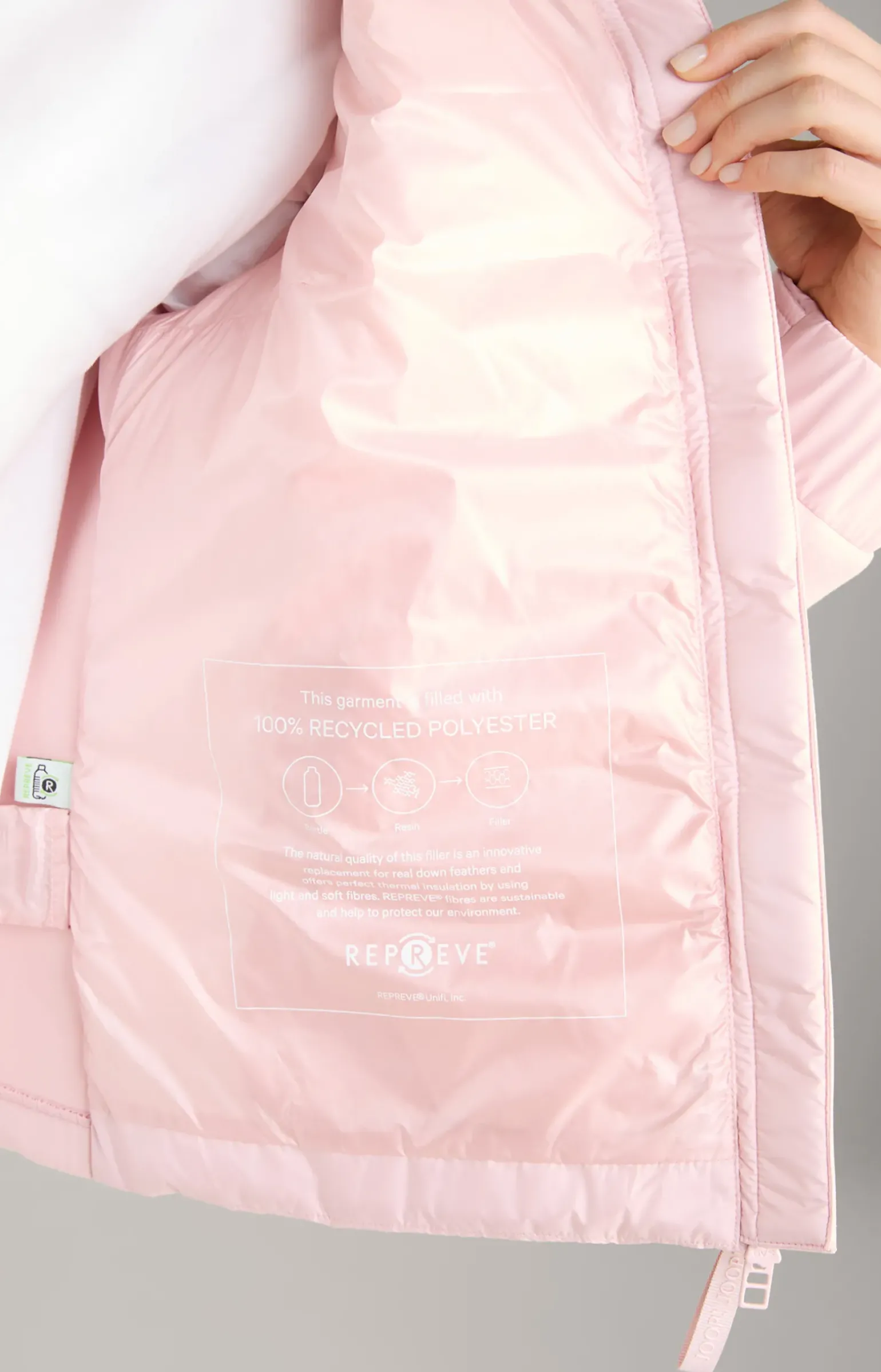- durchgehender Zwei-Wege-Zipper mit Logo-Zugband