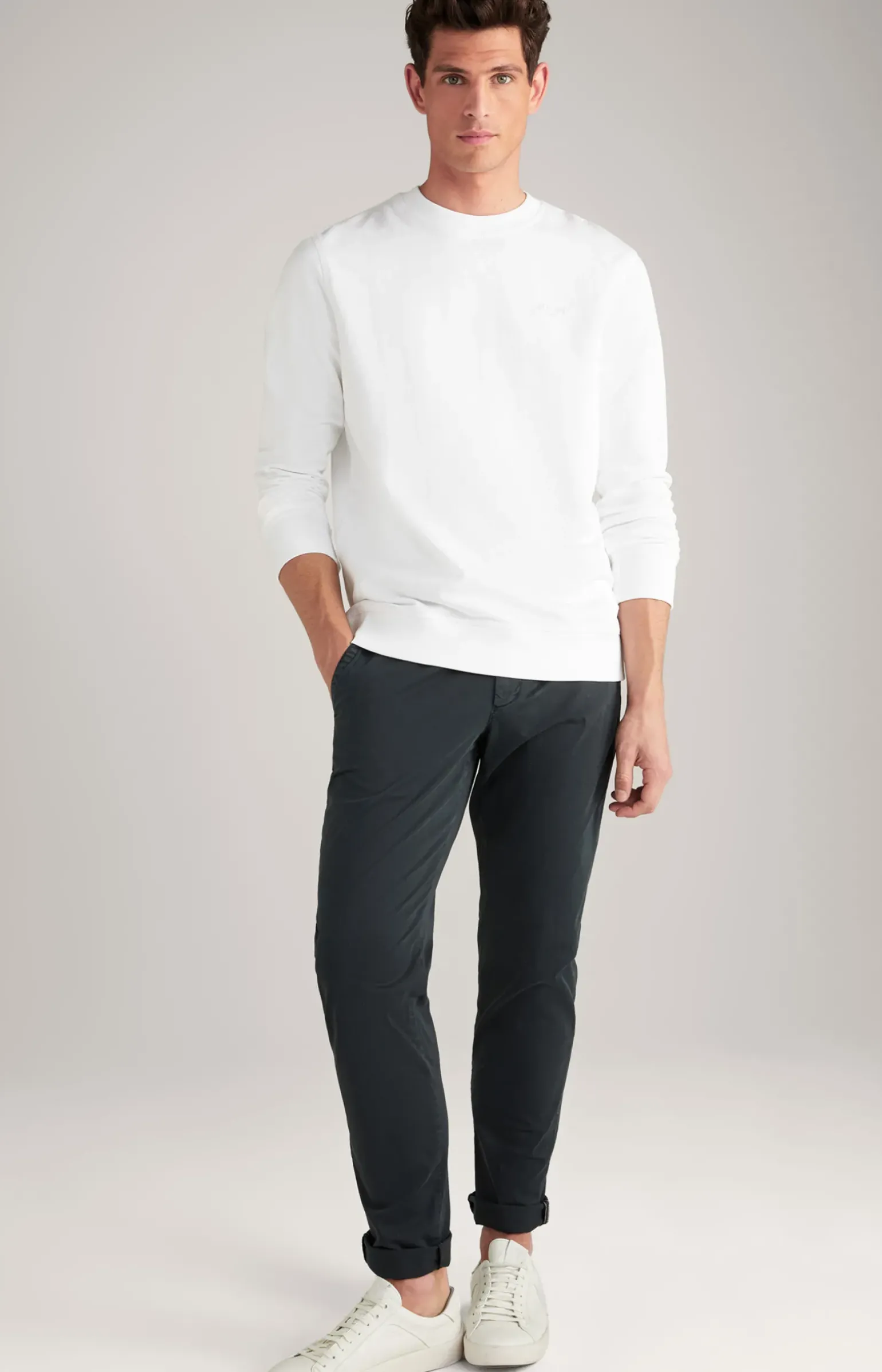- gerader Saum mit breitem Rippbündchen