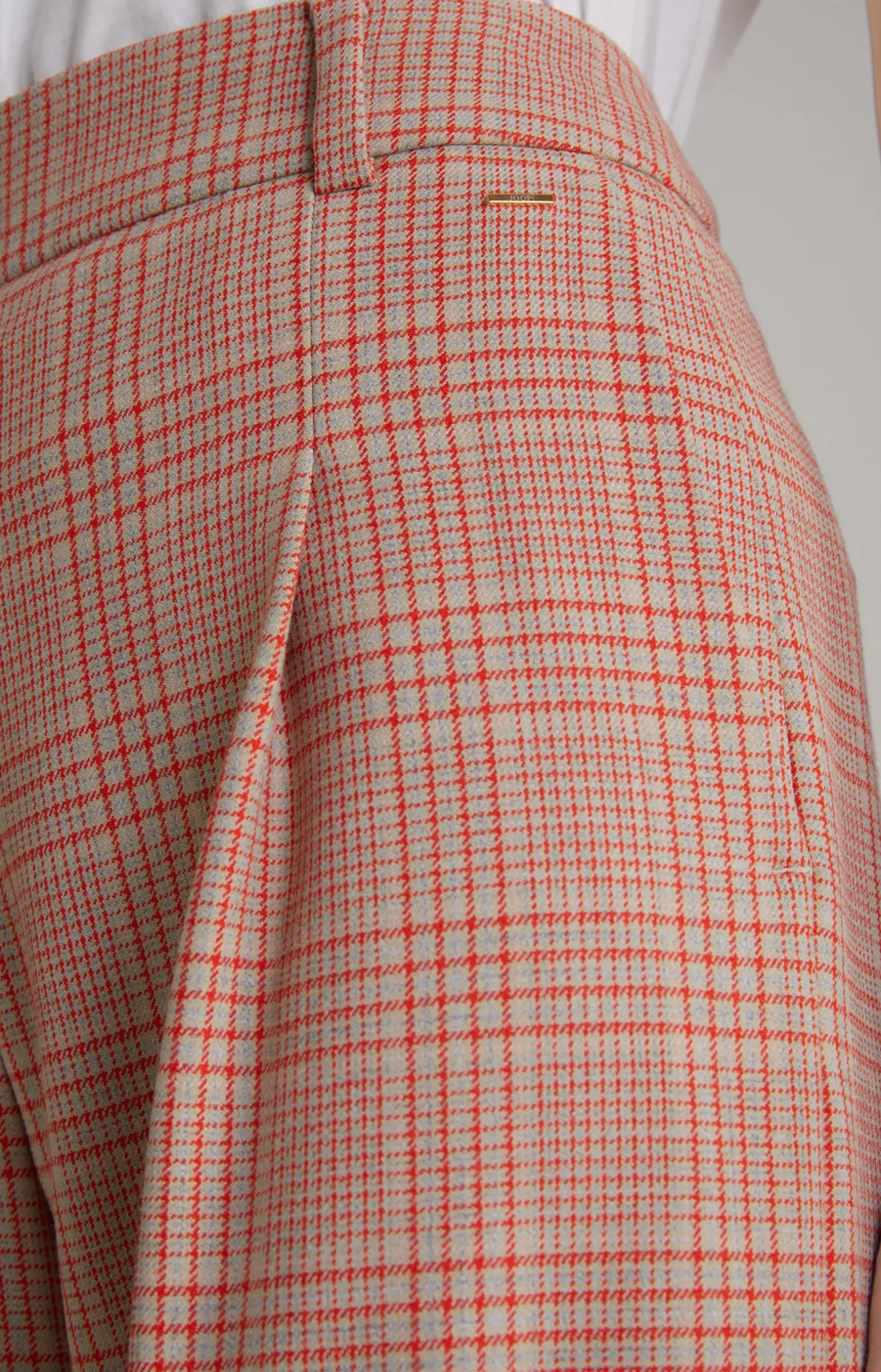 Twill-Hose in Beige/Rot kariert